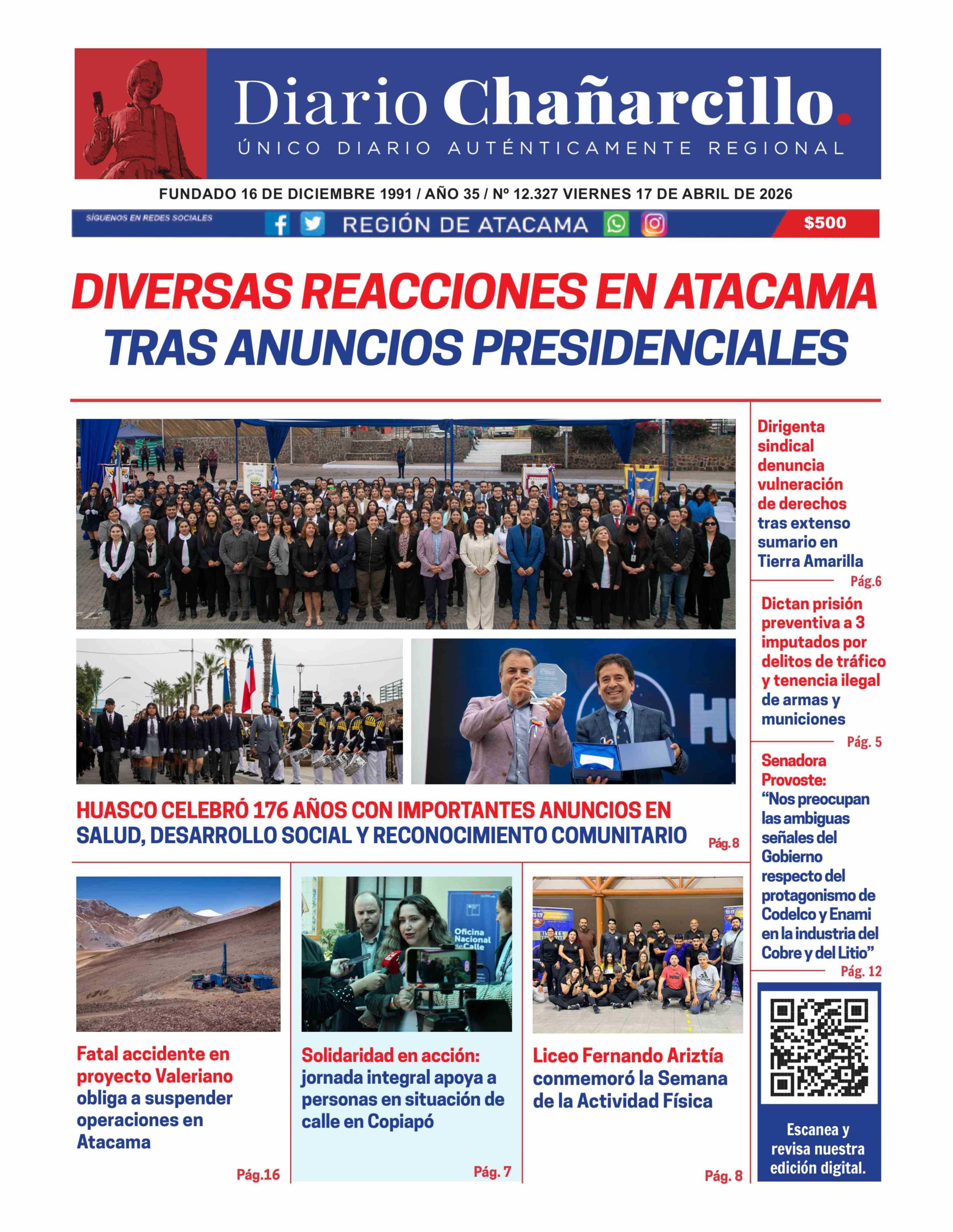 PORTADA DIARIO CHAÑARCILLO CHILE