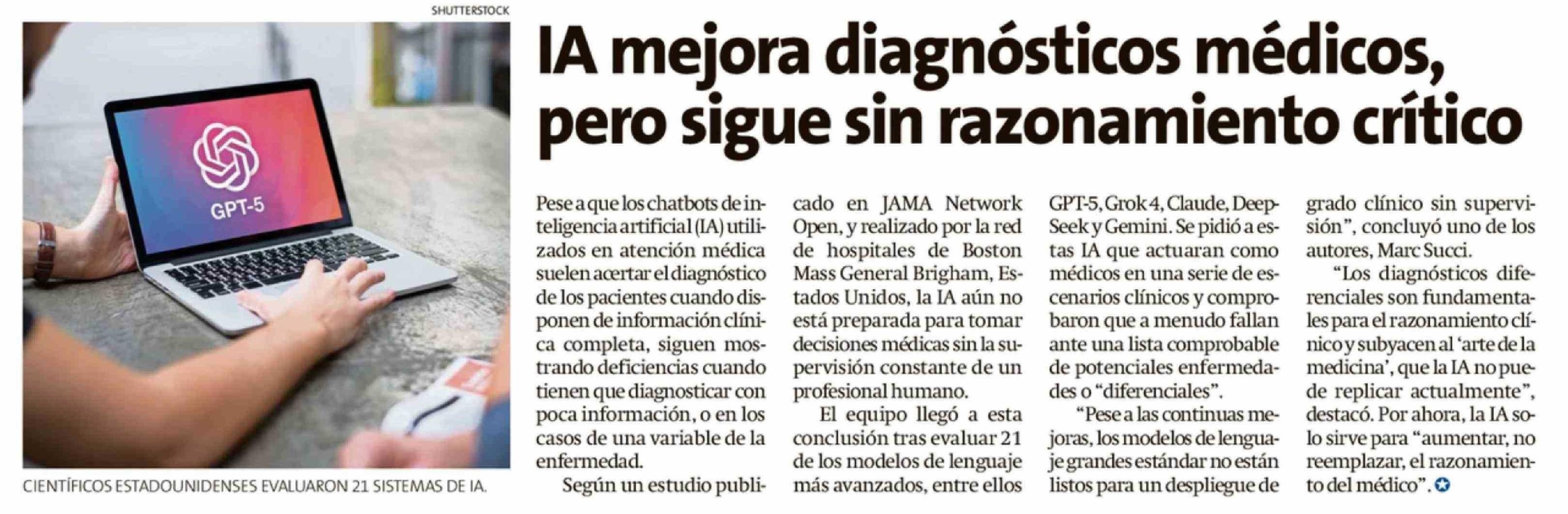 Título: IA mejora diagnósticos médicos, pero sigue sin razonamiento crítico