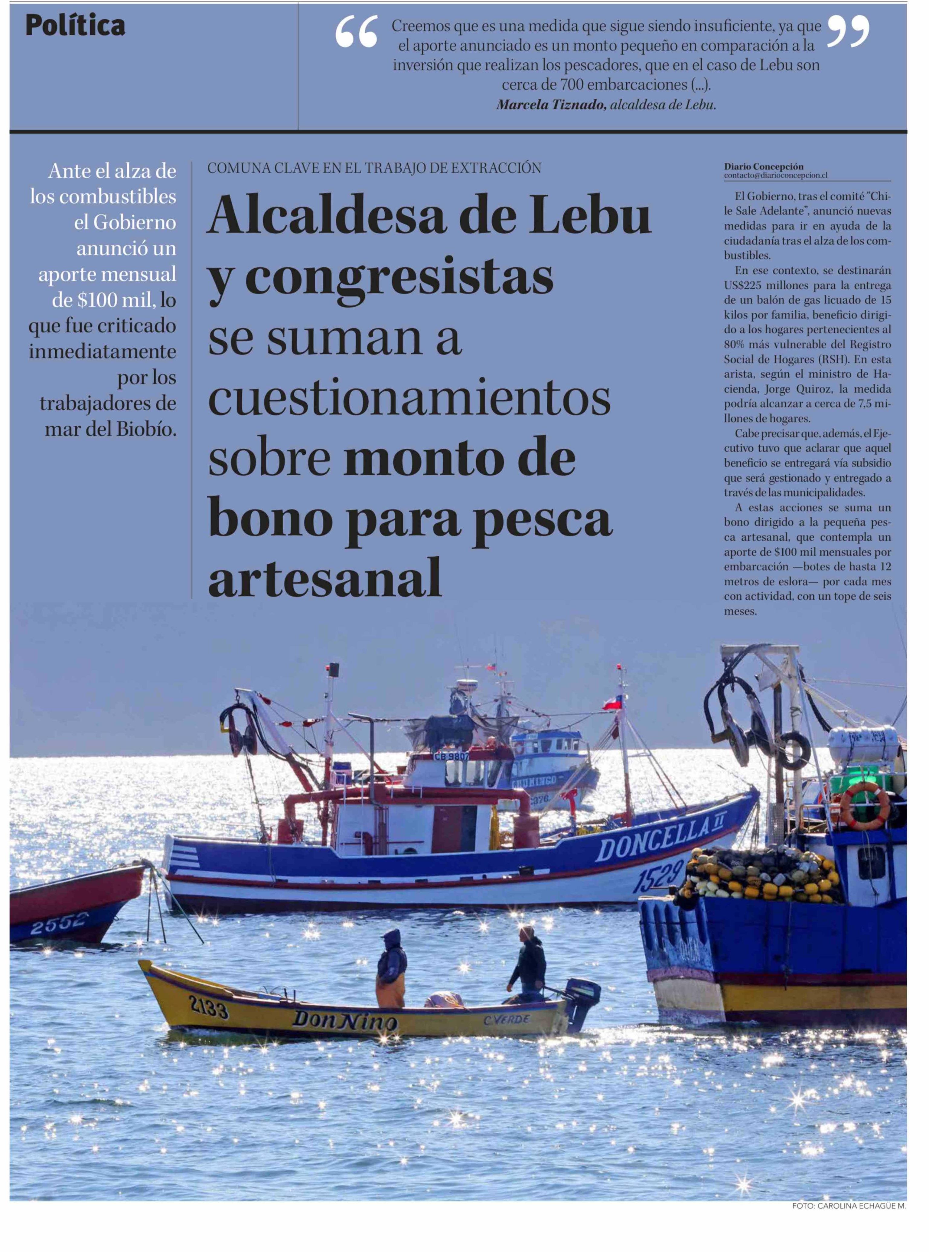 Alcaldesa de Lebu y congresistas se suman a cuestionamientos sobre monto de bono para pesca artesanal