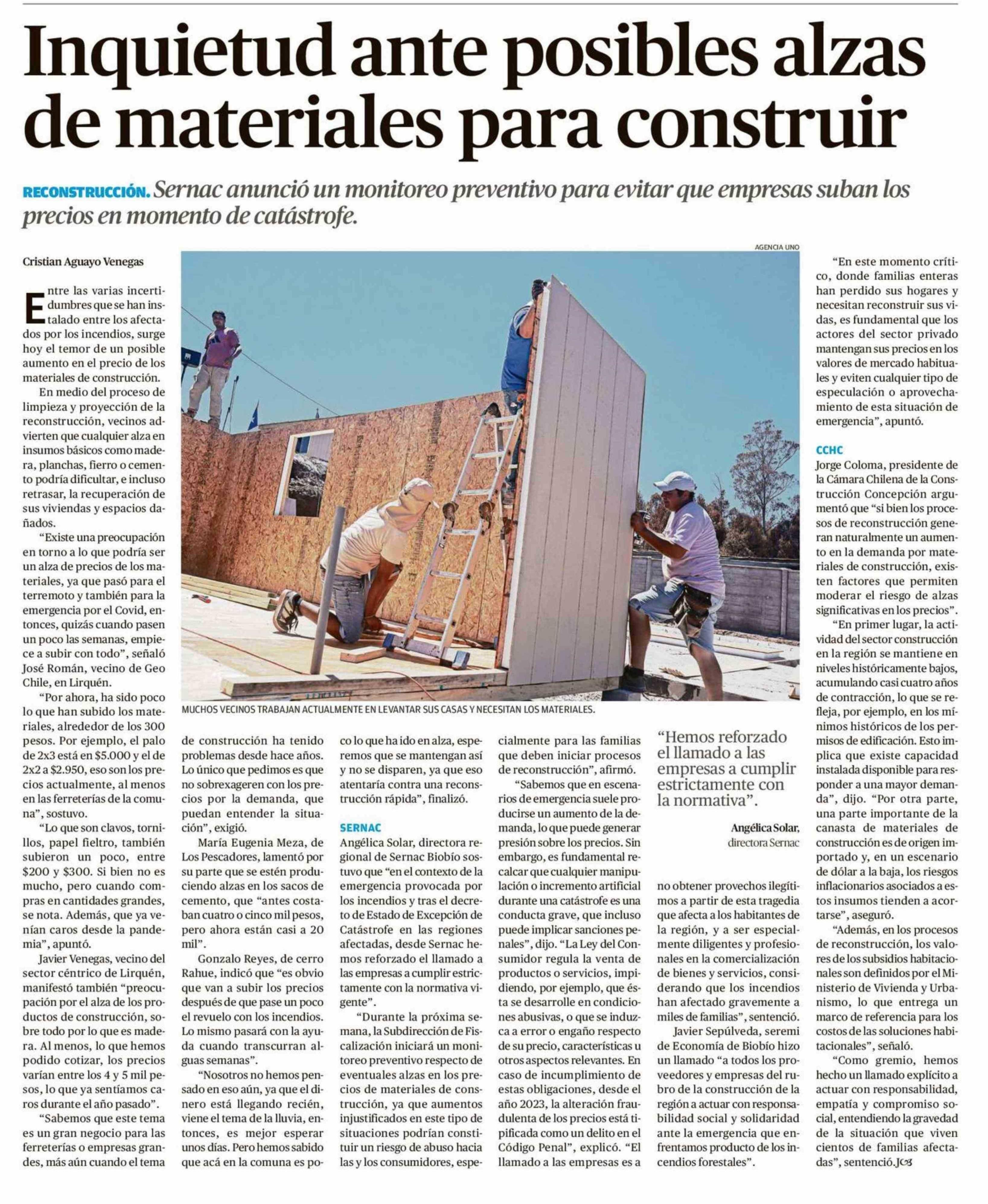 Inquietud ante posibles alzas de materiales para construir