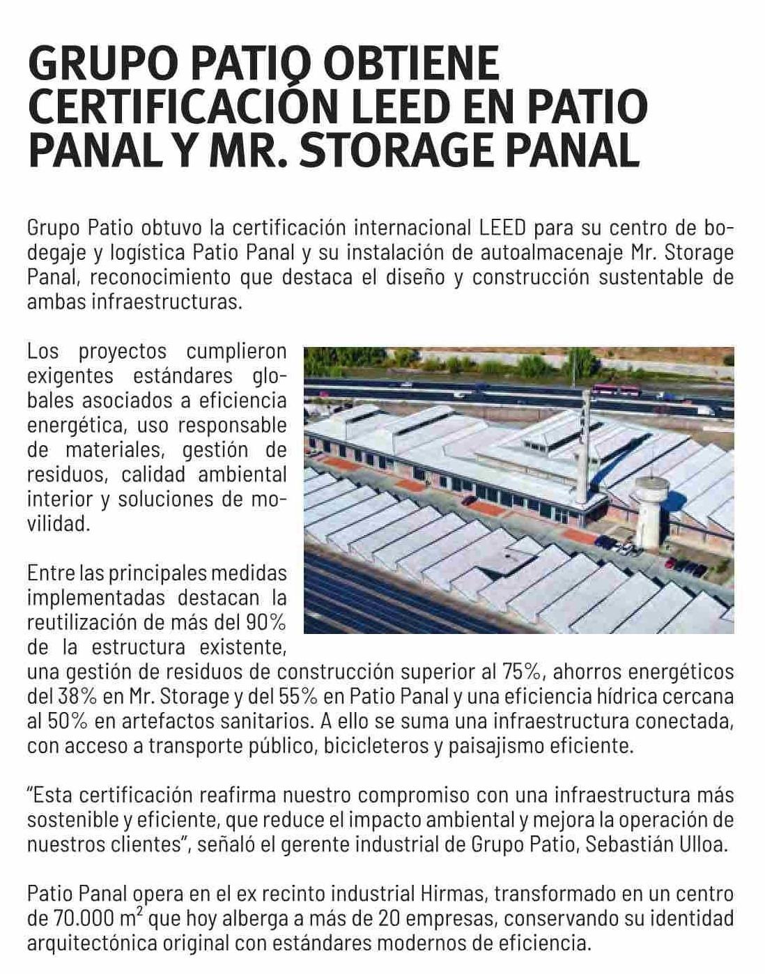 GRUPO PATIQ OBTIENE CERTIFICACION LEED EN PATIO PANAL Y MR. STORAGE PANAL