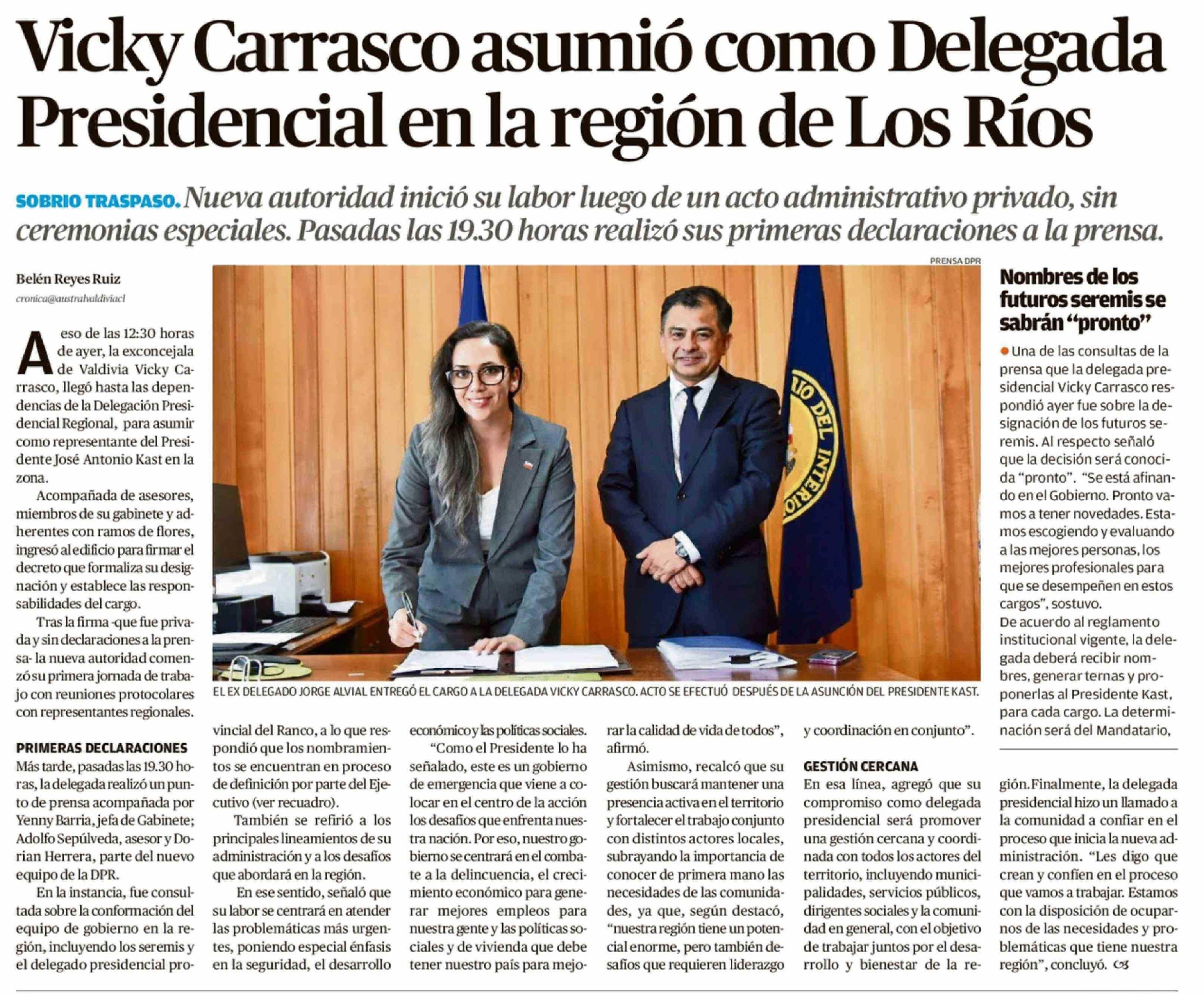 Vicky Carrasco asumió como Delegada Presidencial en la región de Los Ríos