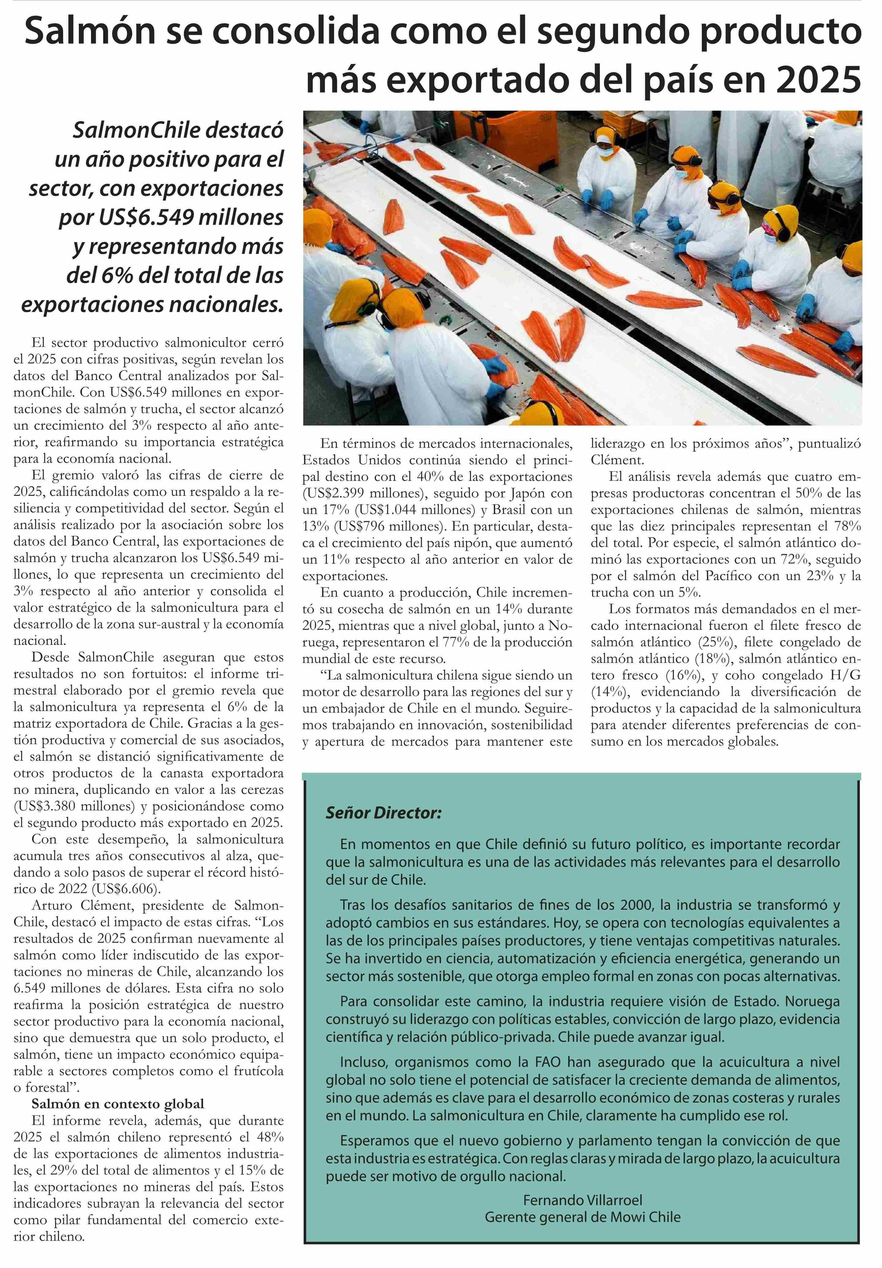 Salmón se consolida como el segundo producto más exportado del país en 2025