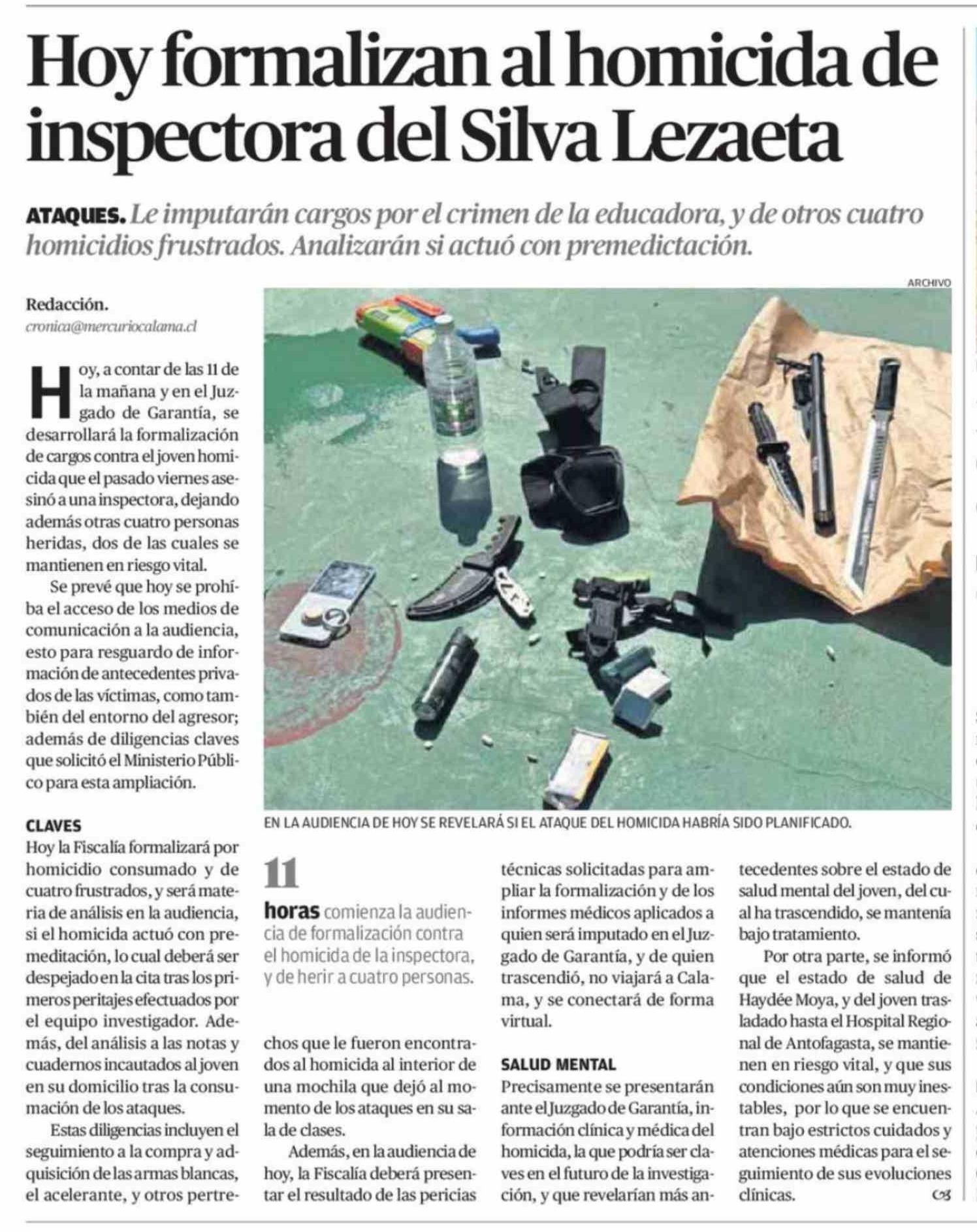 Hoy formalizan al homicida de inspectora del Silva Lezaeta