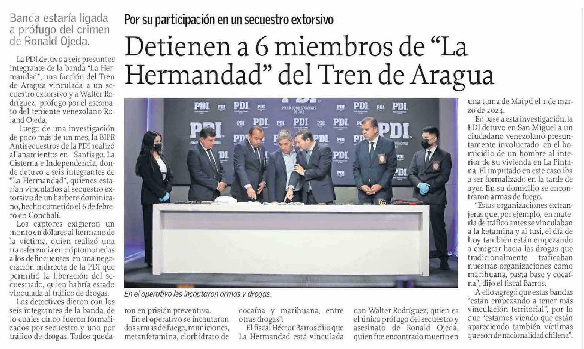 Detienen a 6 miembros de “La Hermandad” del Tren de Aragua