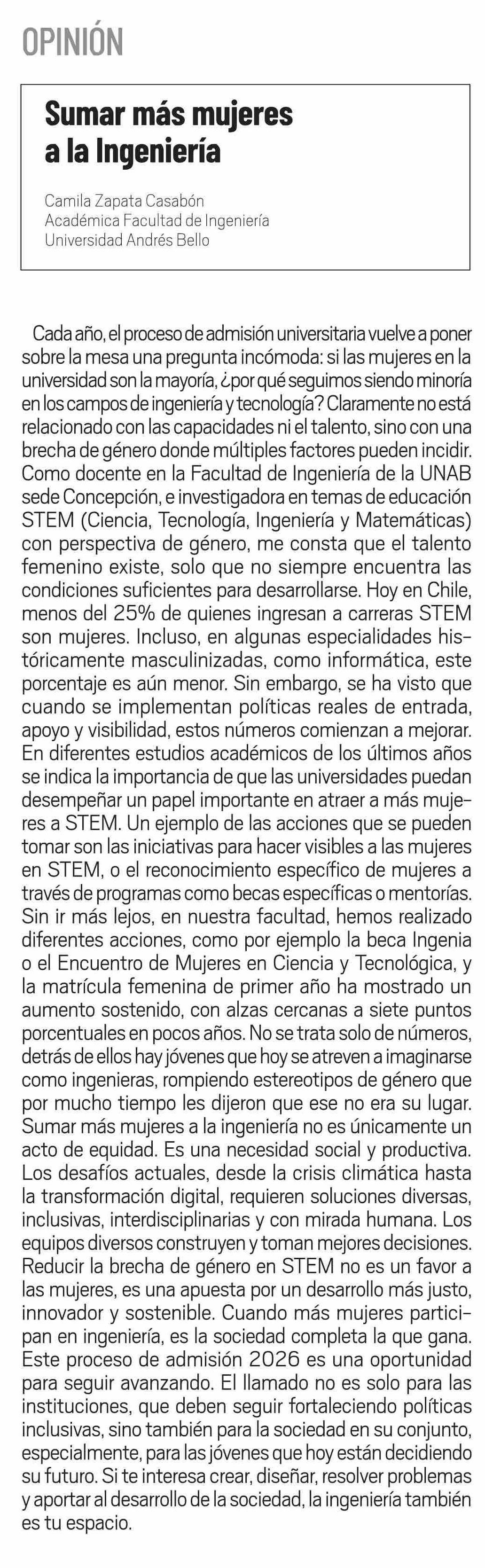 Columnas de Opinión: Sumar más mujeres a la Ingeniería