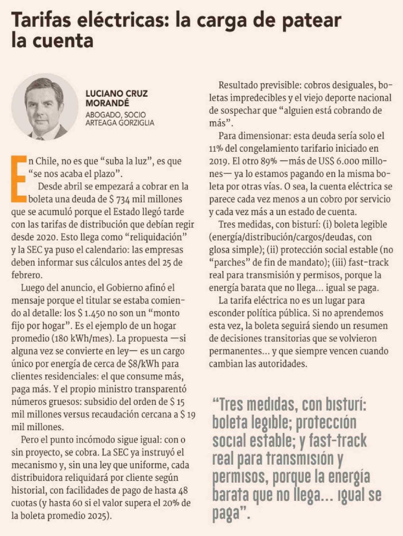 Columnas de Opinión: Tarifas eléctricas: la carga de patear la cuenta