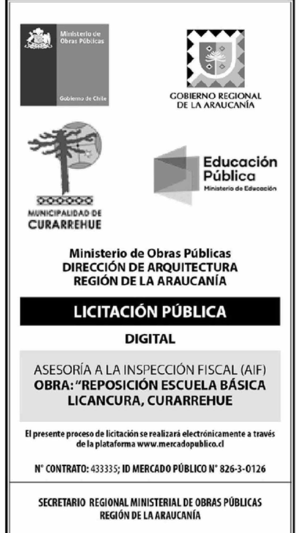 Aviso Licitaciones: Ministerio de Obras Públicas