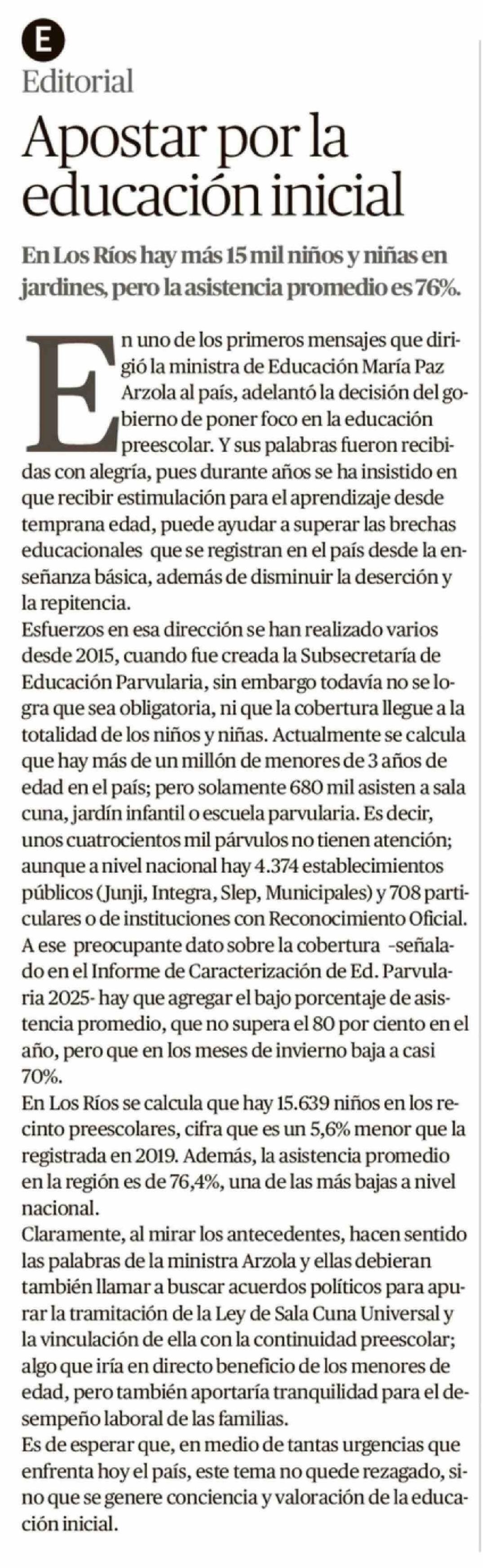 Editorial: Apostar por la educación inicial