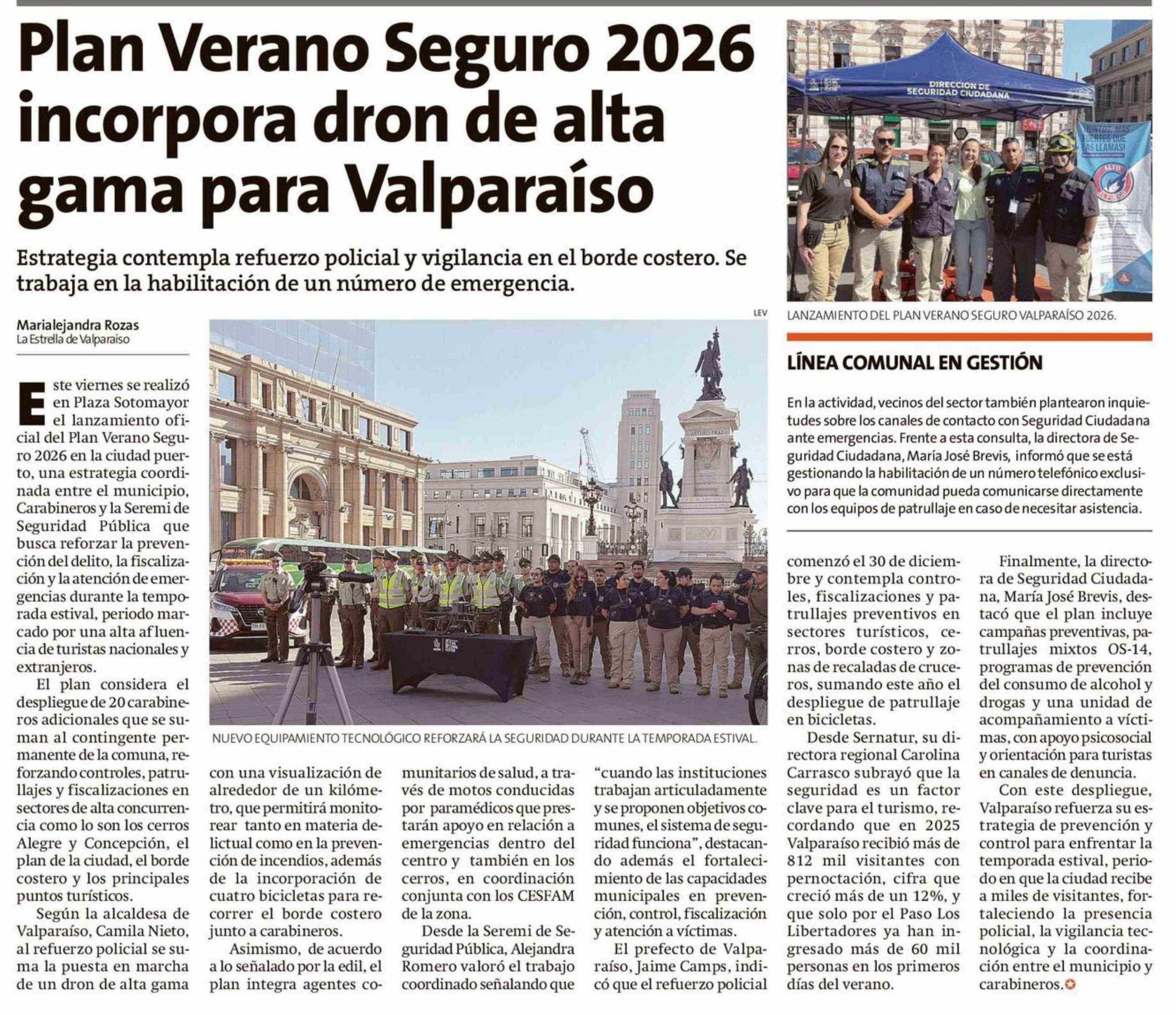 Plan Verano Seguro 2026 incorpora dron de alta gama para Valparaíso