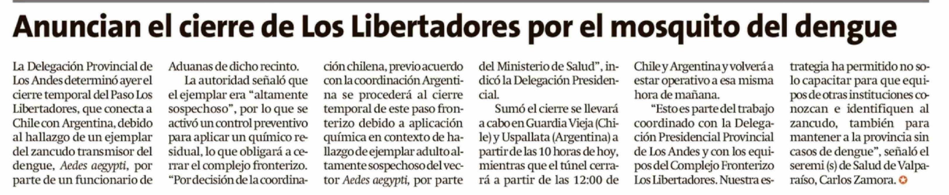 Anuncian el cierre de Los Libertadores por el mosquito del dengue