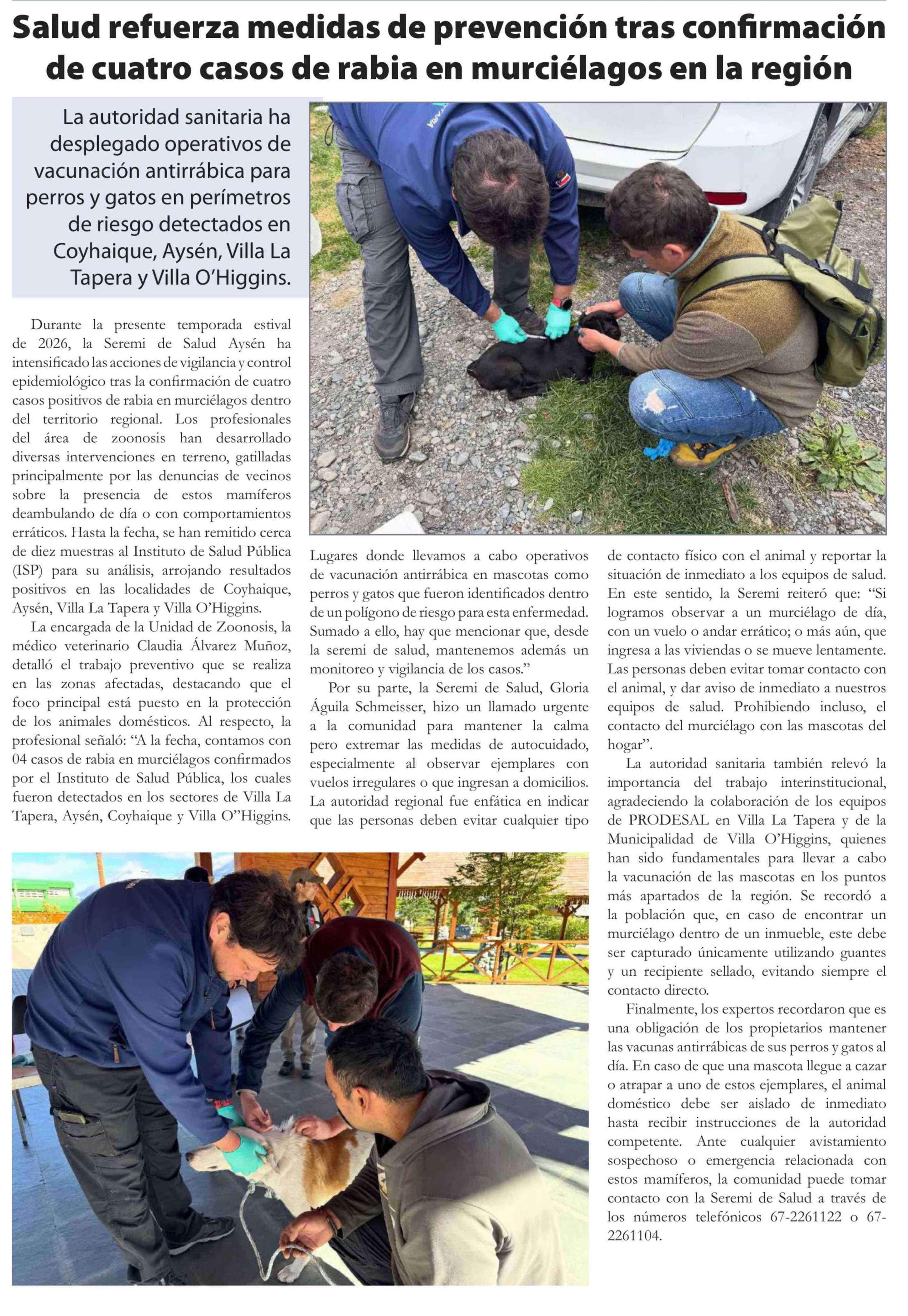 Título: Salud refuerza medidas de prevención tras confirmación de cuatro casos de rabia en murciélagos en la región