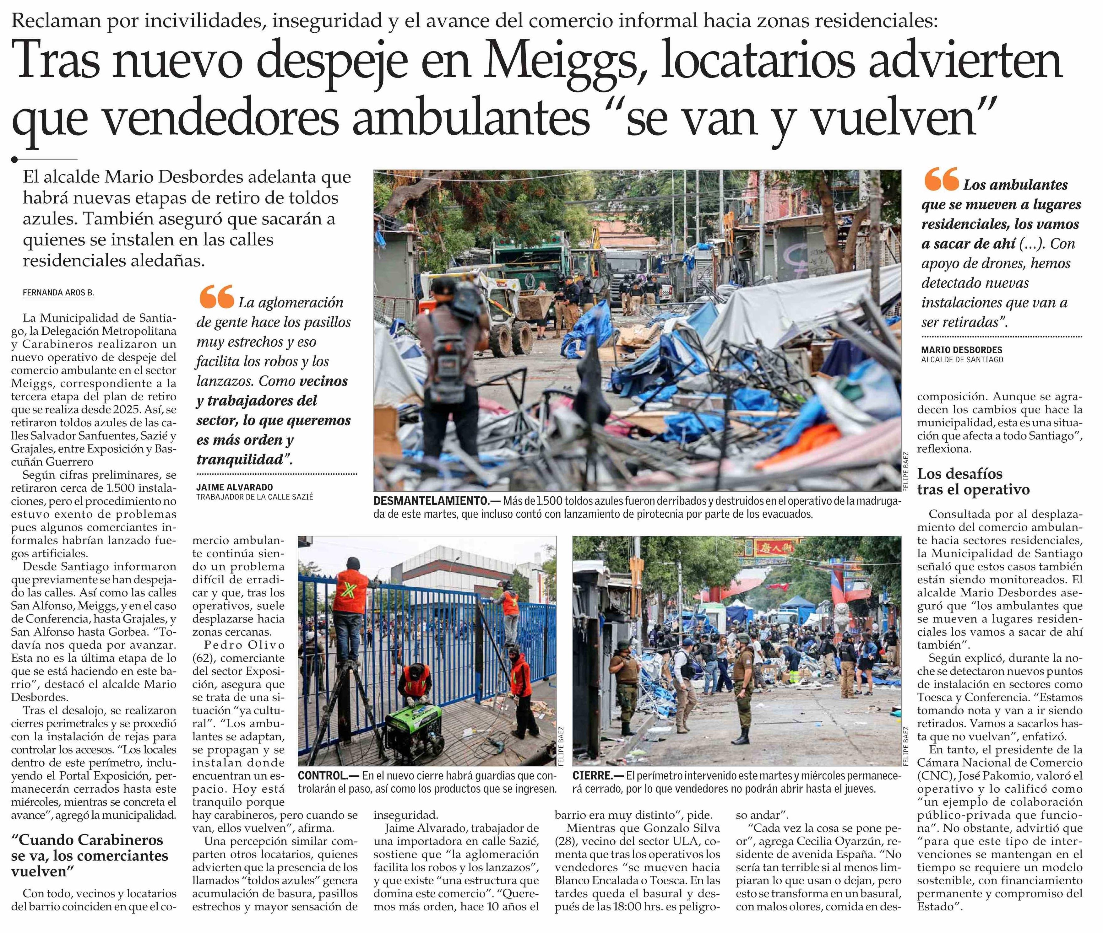 Tras nuevo despeje en Meiggs, locatarios advierten que vendedores ambulantes “se van y vuelven”