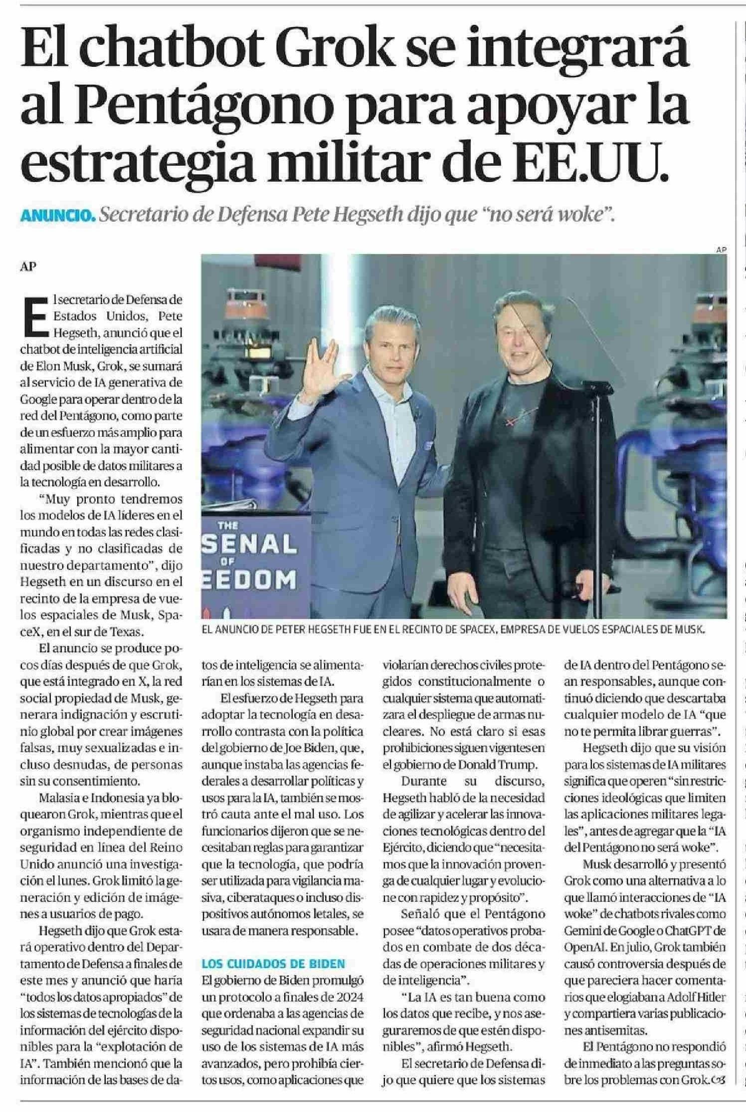 El chatbot Grok se integrará al Pentágono para apoyar la estrategia militar de EE.UU.