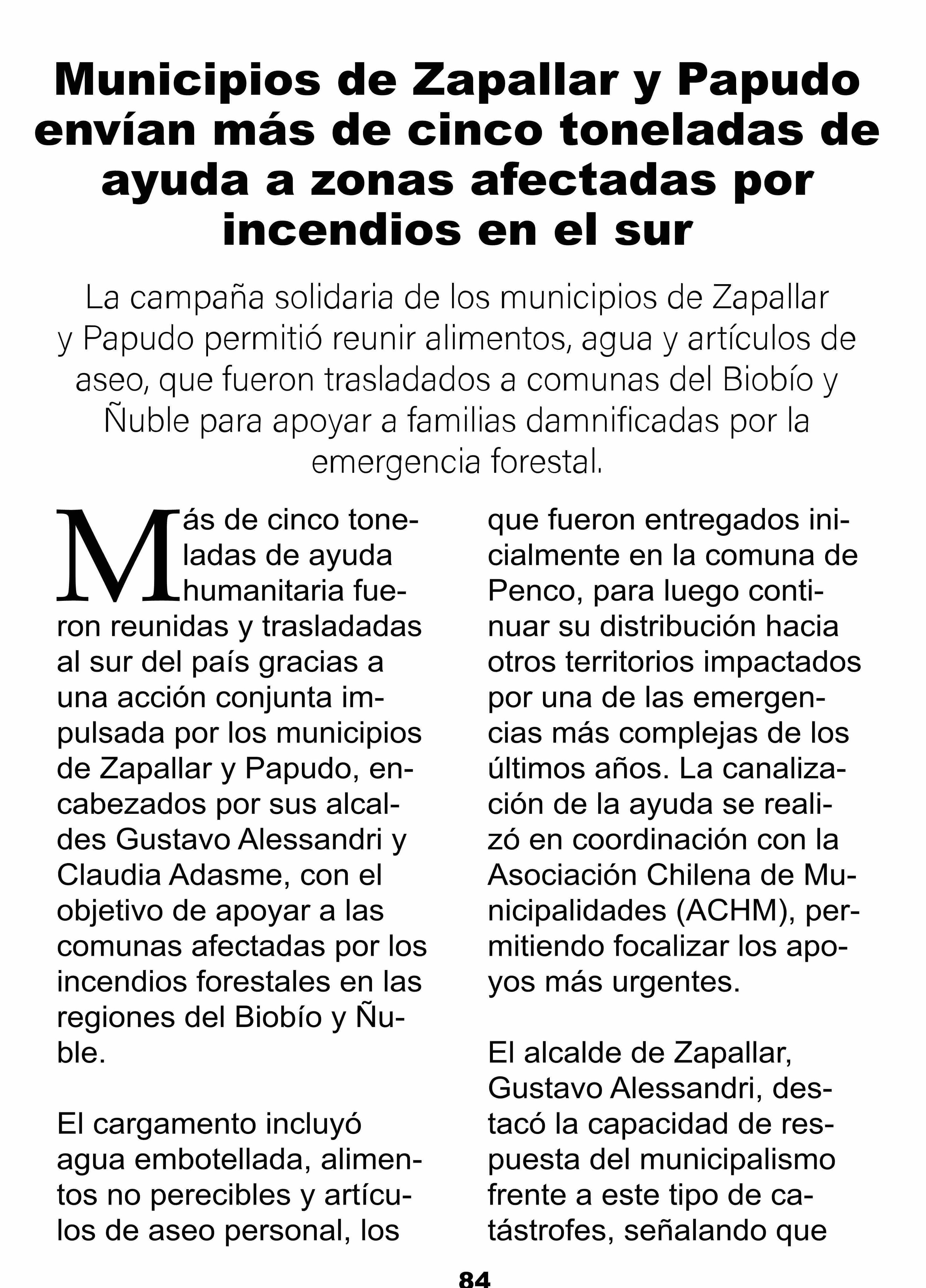 | Título: | Municipios de Zapallar y Papudo envían más de cinco toneladas de ayuda a zonas afectadas por incendios en el sur |