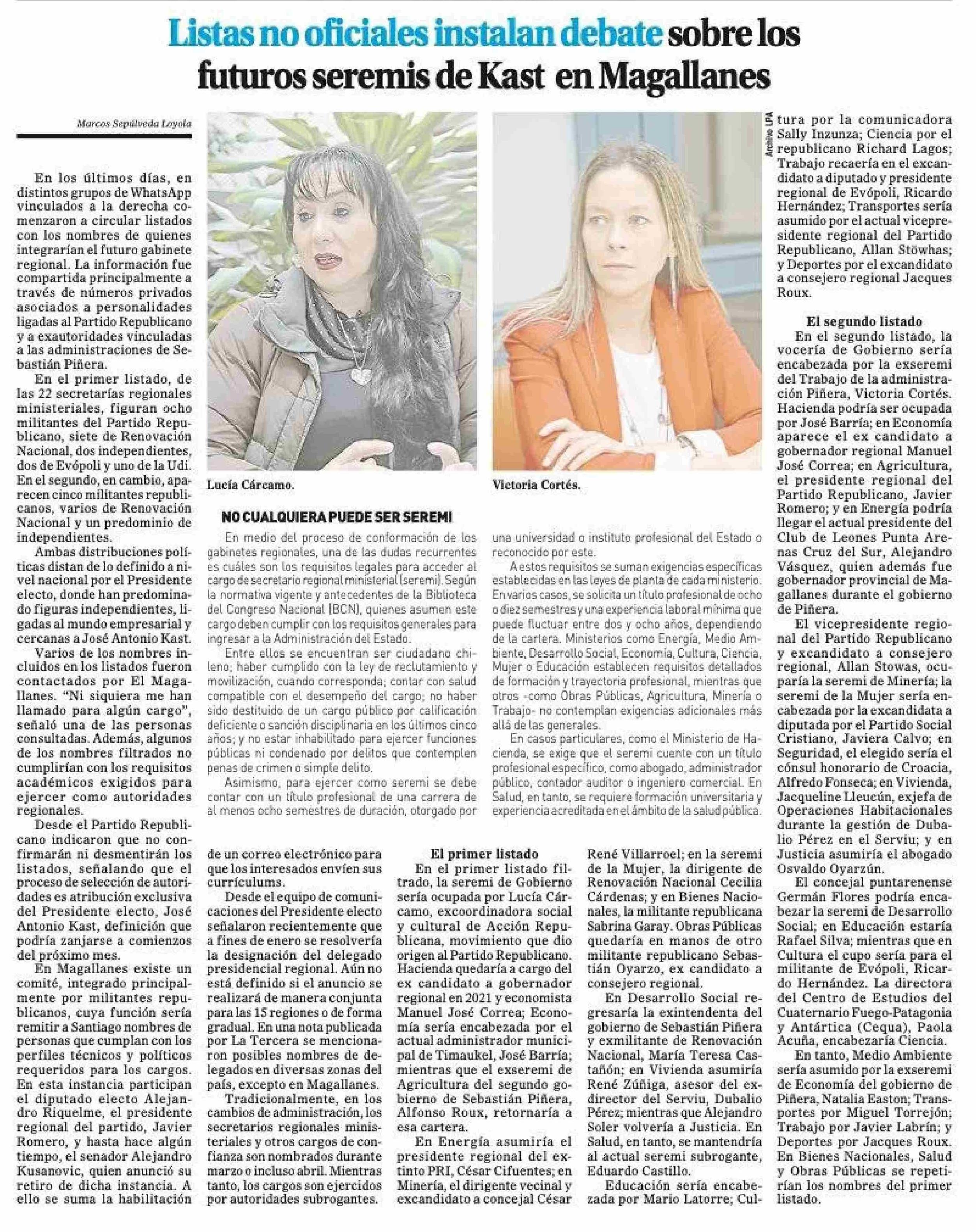 Listas no oficiales instalan debate sobre los futuros seremis de Kast en Magallanes