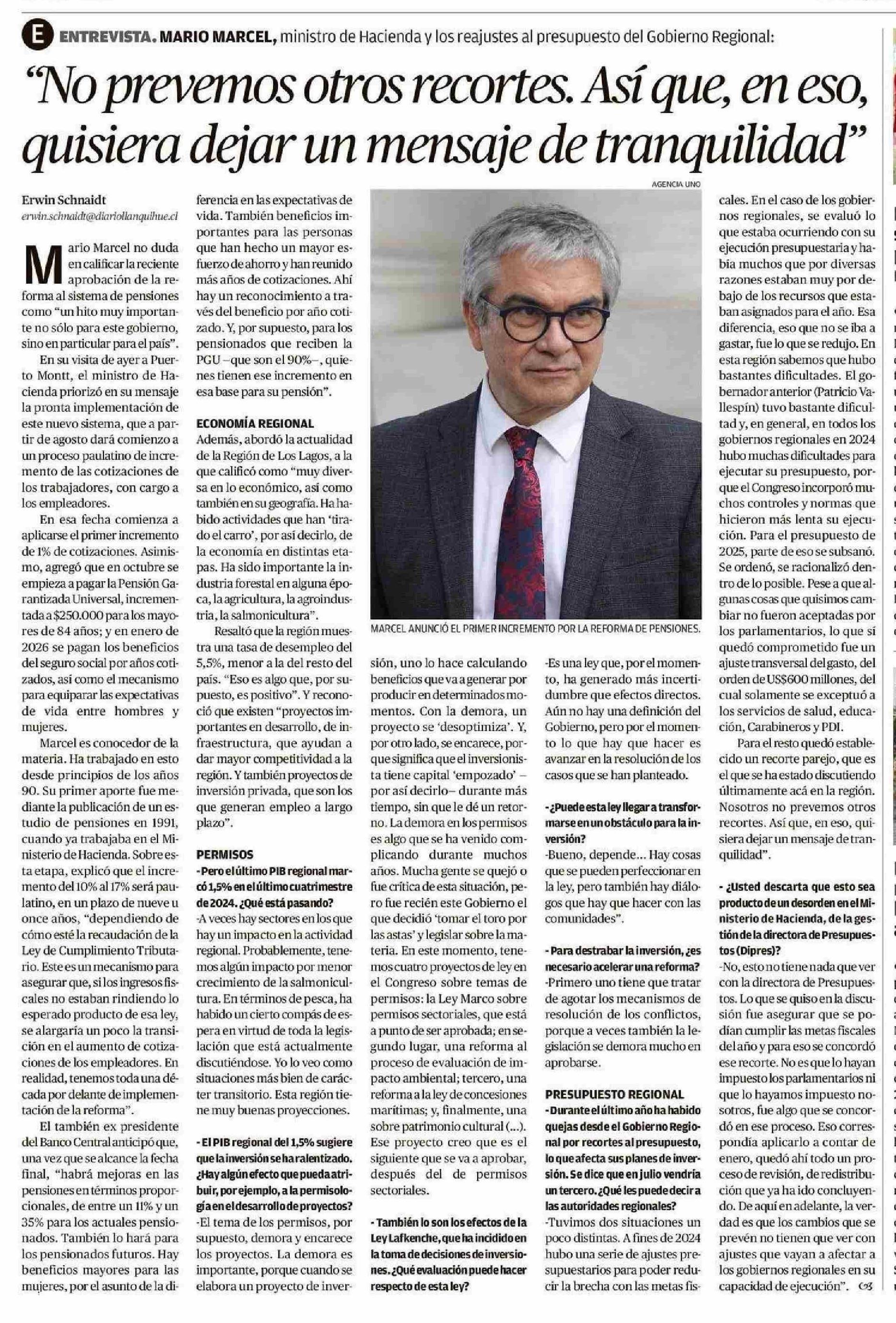 "No prevemos otros recortes. Así que, en eso, quisiera dejar un mensaje de tranquilidad"