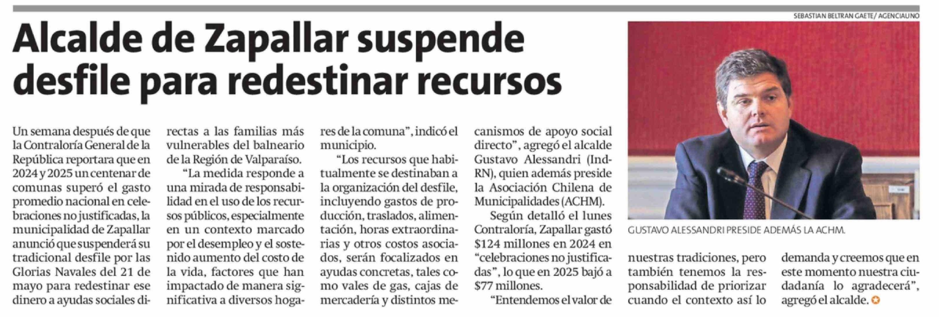 Alcalde de Zapallar suspende desfile para redestinar recursos