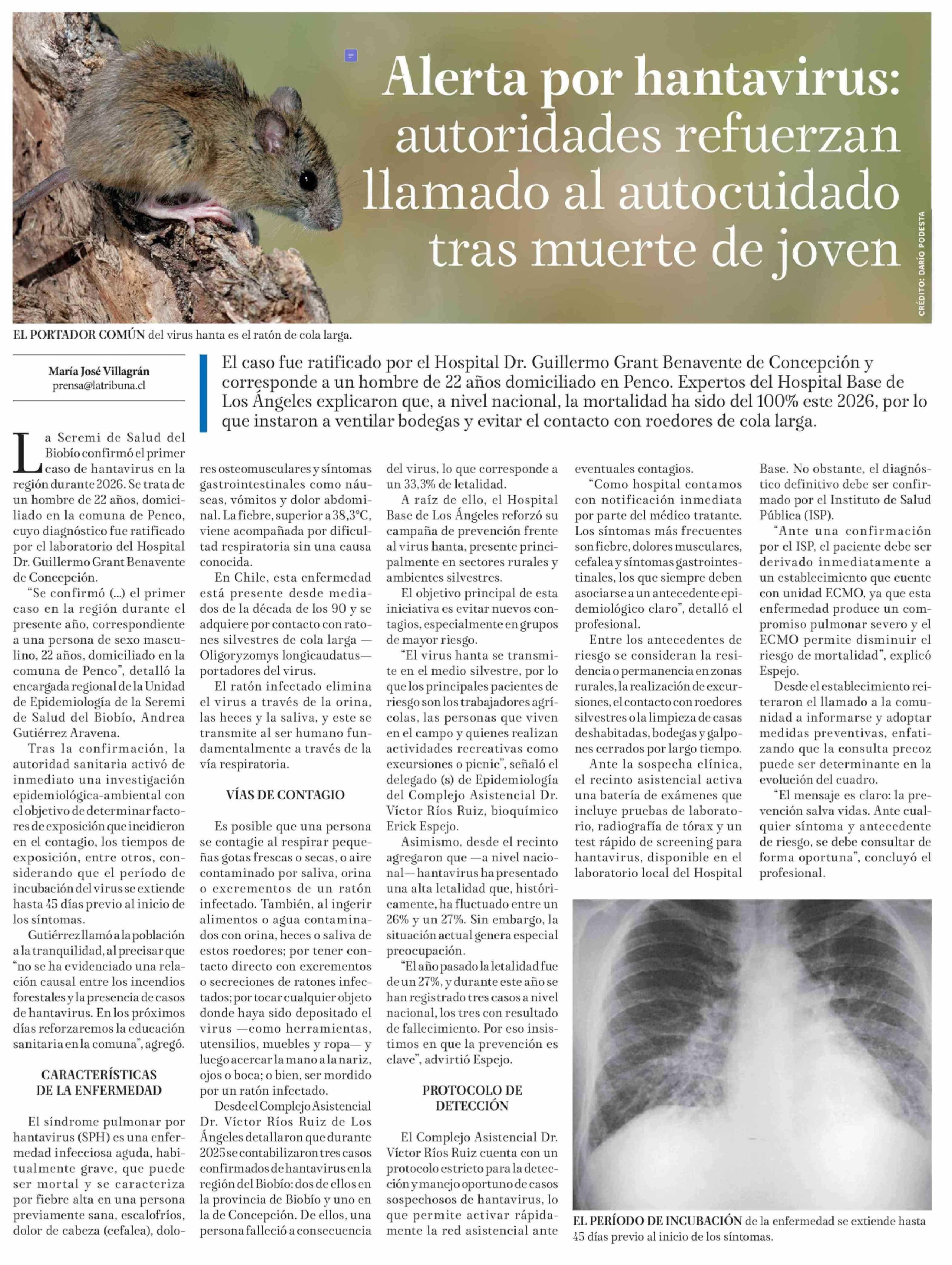 Alerta por hantavirus: autoridades refuerzan llamado al autocuidado tras muerte de joven