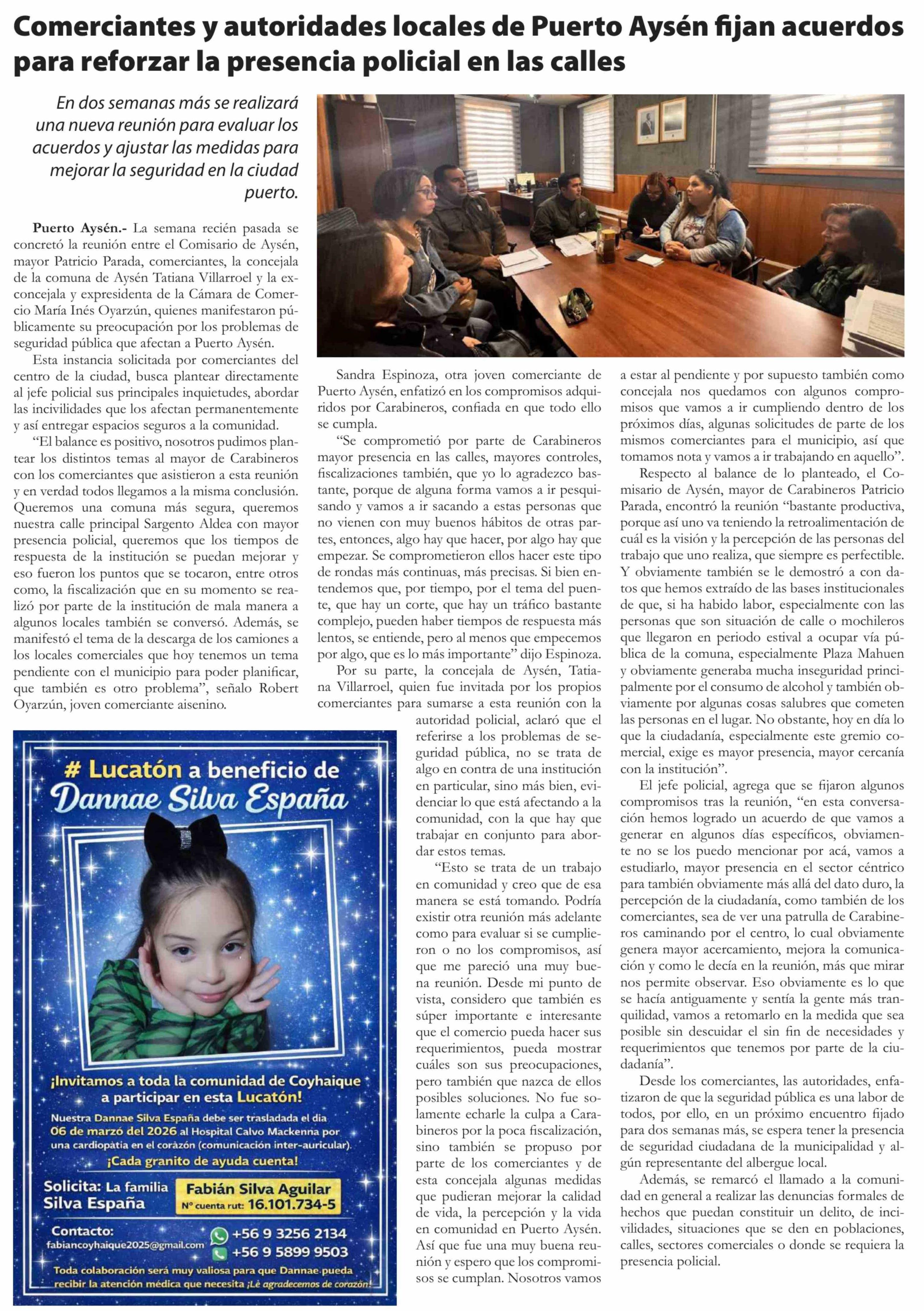 Comerciantes y autoridades locales de Puerto Aysén fijan acuerdos para reforzar la presencia policial en las calles