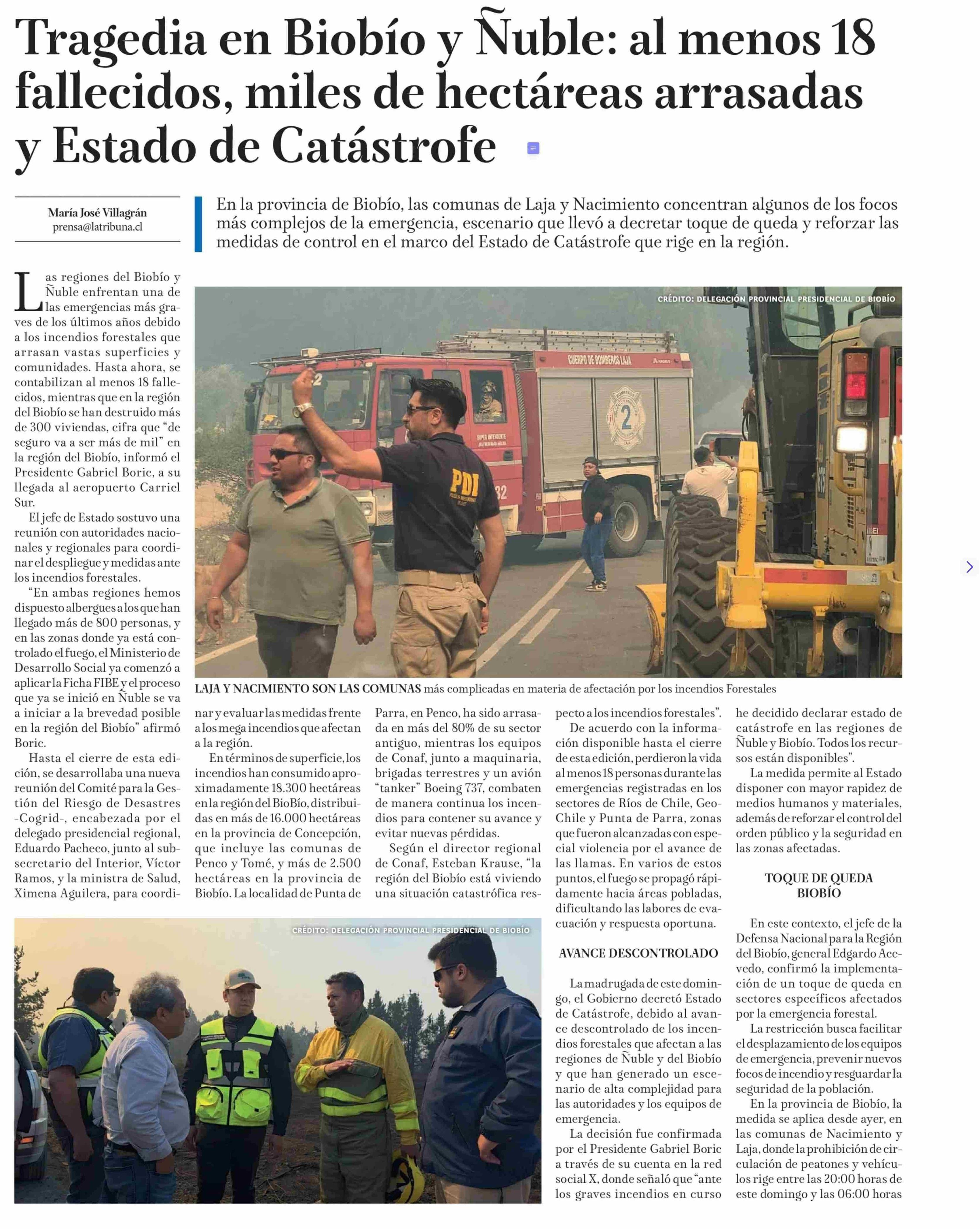 Tragedia en Biobío y Nuble: al menos 18 fallecidos, miles de hectáreas arrasadas y Estado de Catástrofe