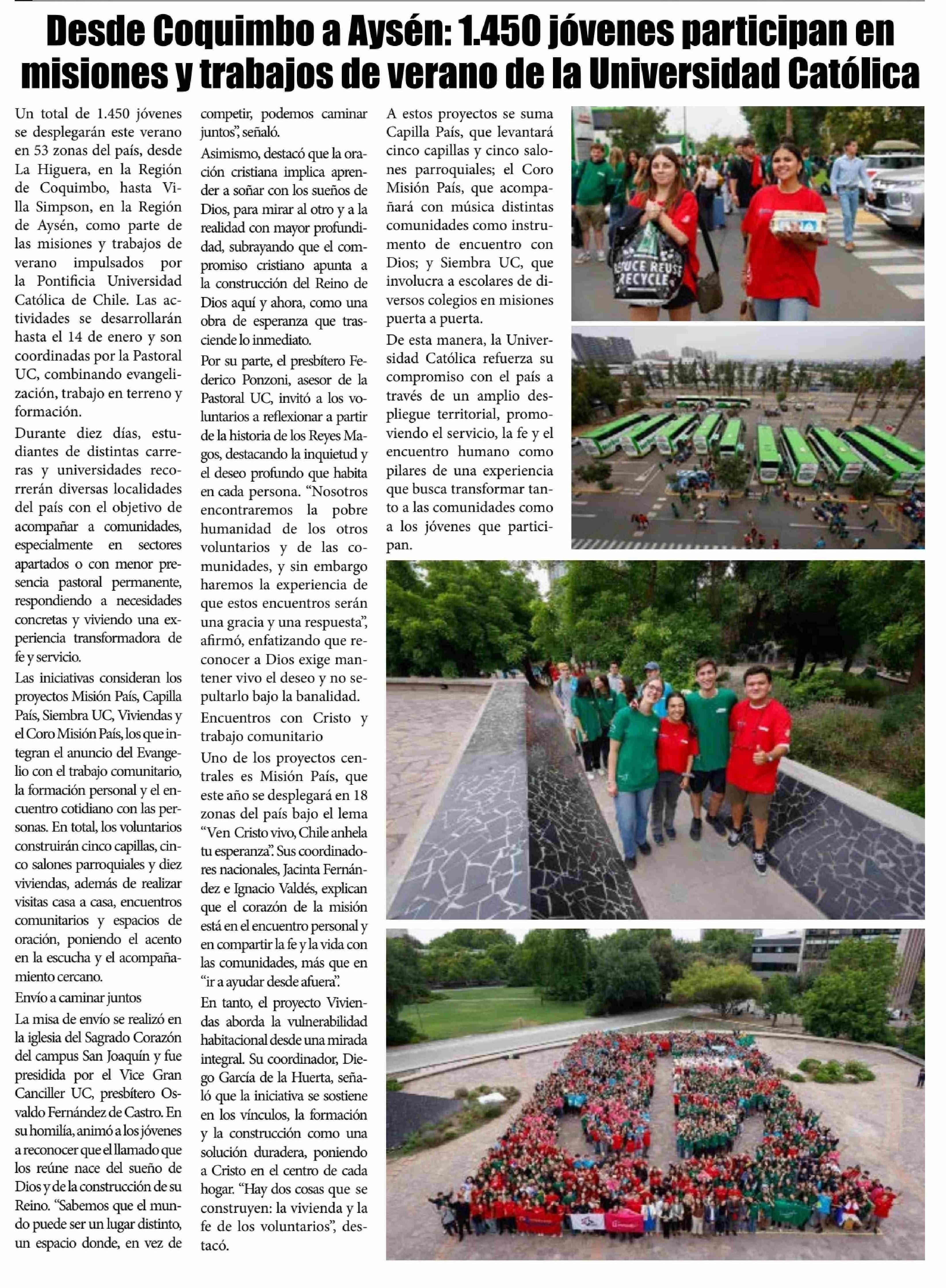 Desde Coquimbo a Aysen: 1.450 jóvenes participan en misiones y trabajos de verano de la Universidad Católica