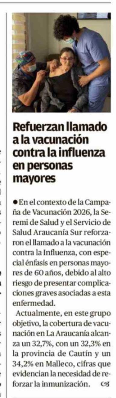 Refuerzan llamado a la vacunación contra la influenza en personas mayores