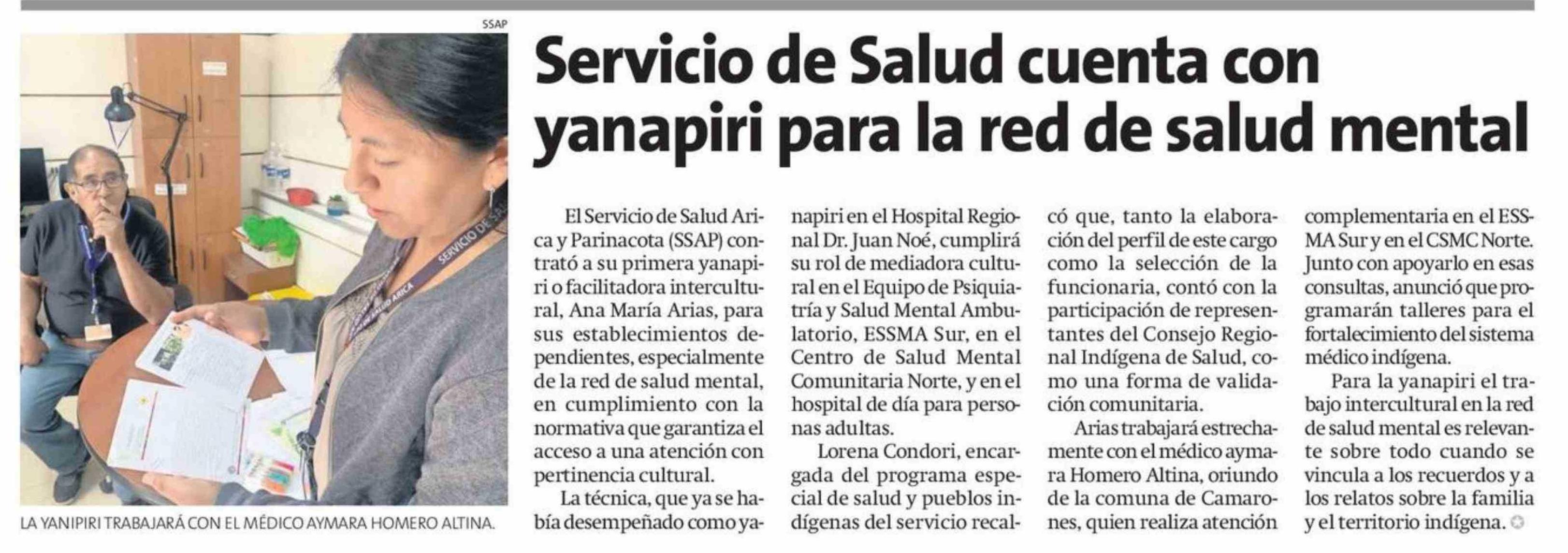Servicio de Salud cuenta con yanapiri para la red de salud mental