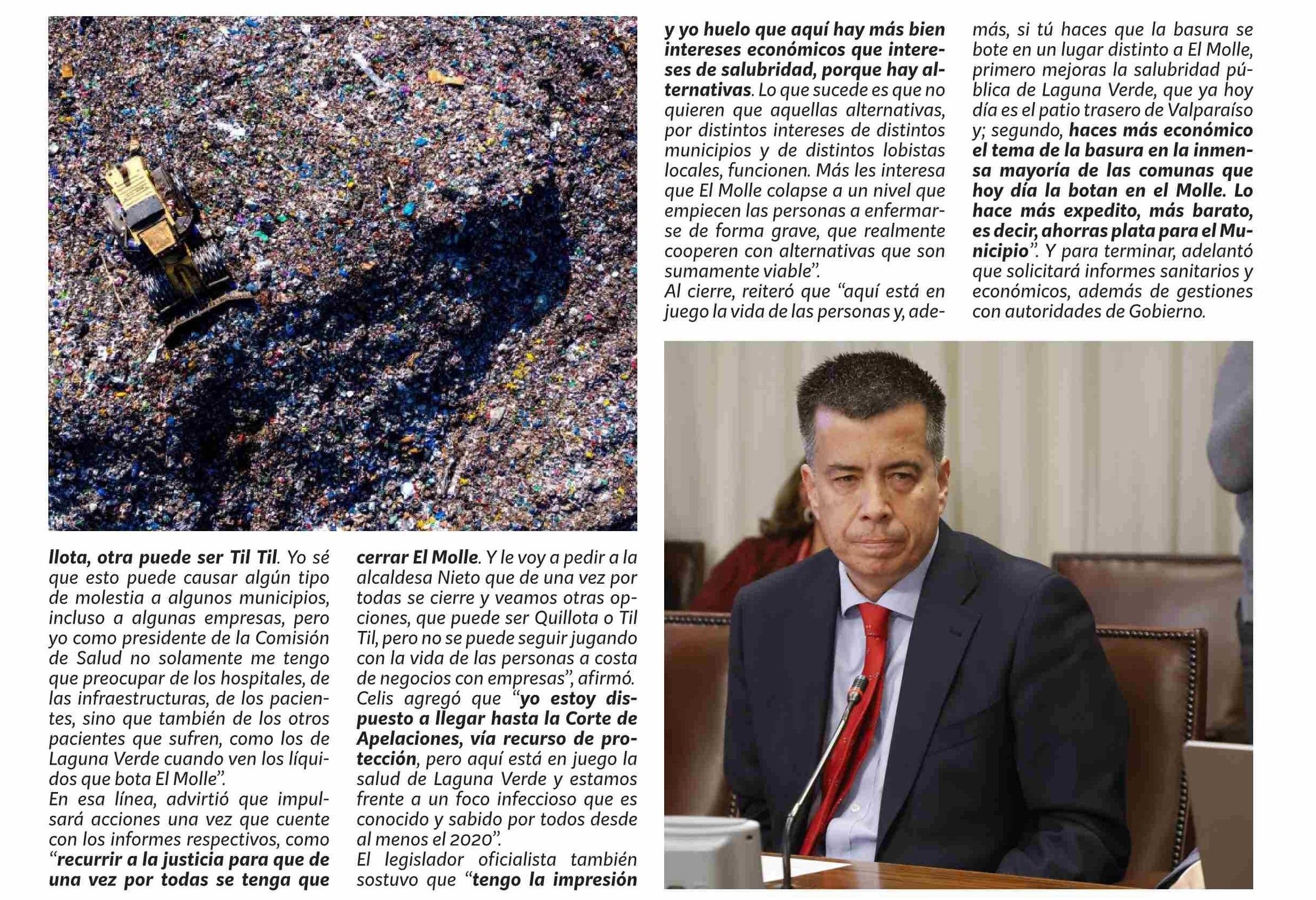 Diputado Celis apunta a "intereses económicos” tras crisis del relleno El Molle y plantea a Quillota y Til Til como alternativas
