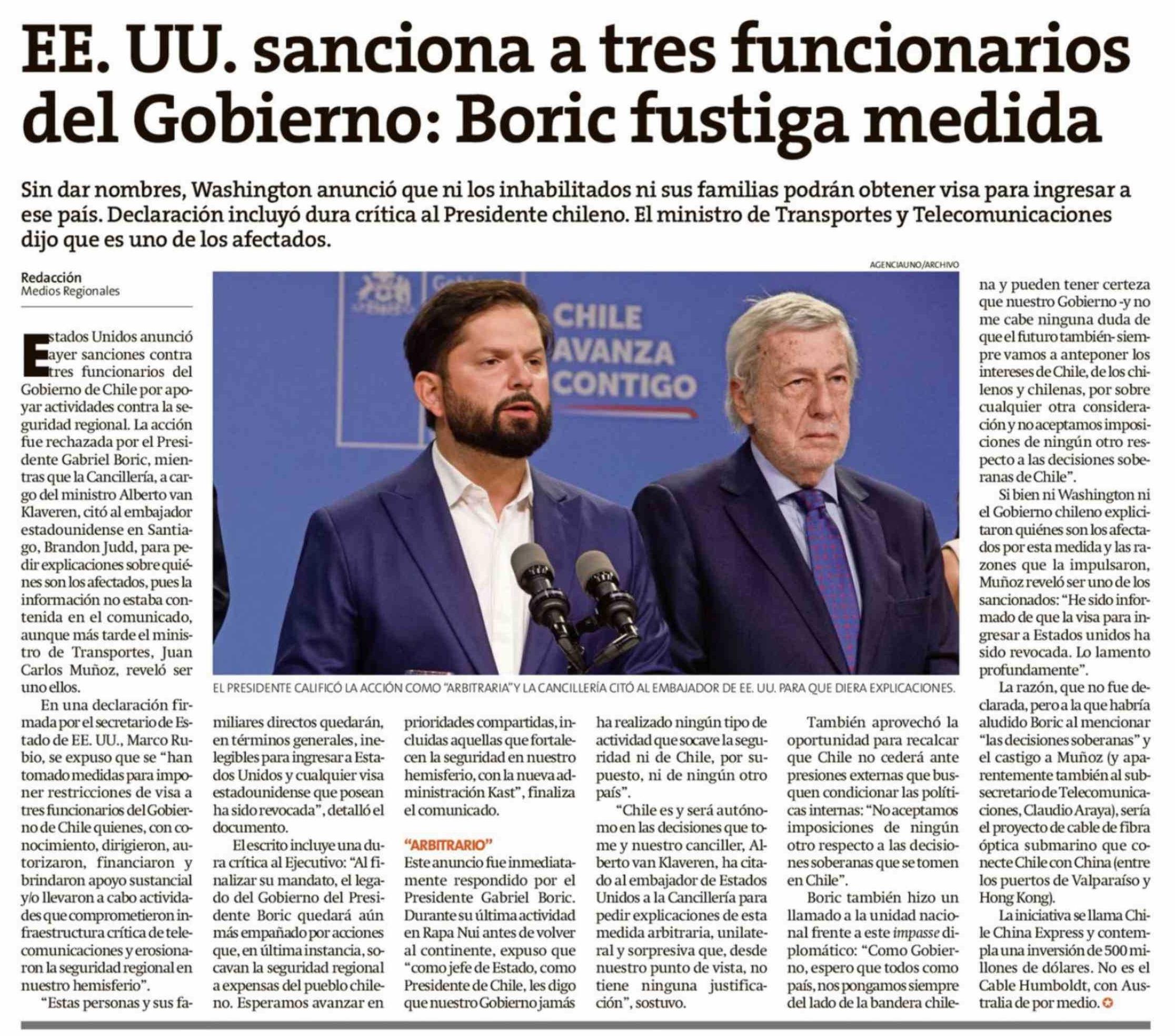 EE. UU. sanciona a tres funcionarios del Gobierno: Boric fustiga medida
