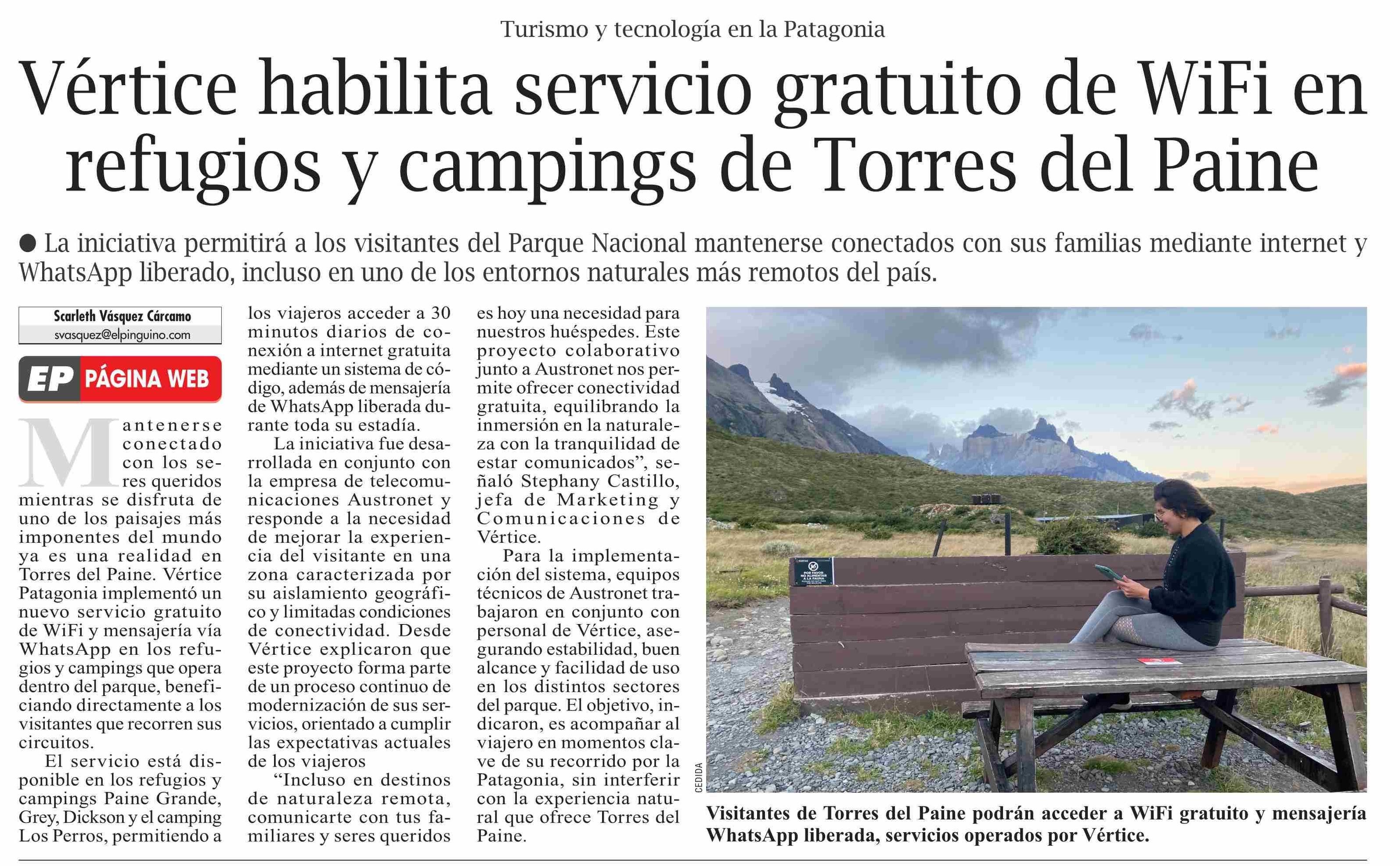 Vértice habilita servicio gratuito de WiFi en refugios y campings de Torres del Paine