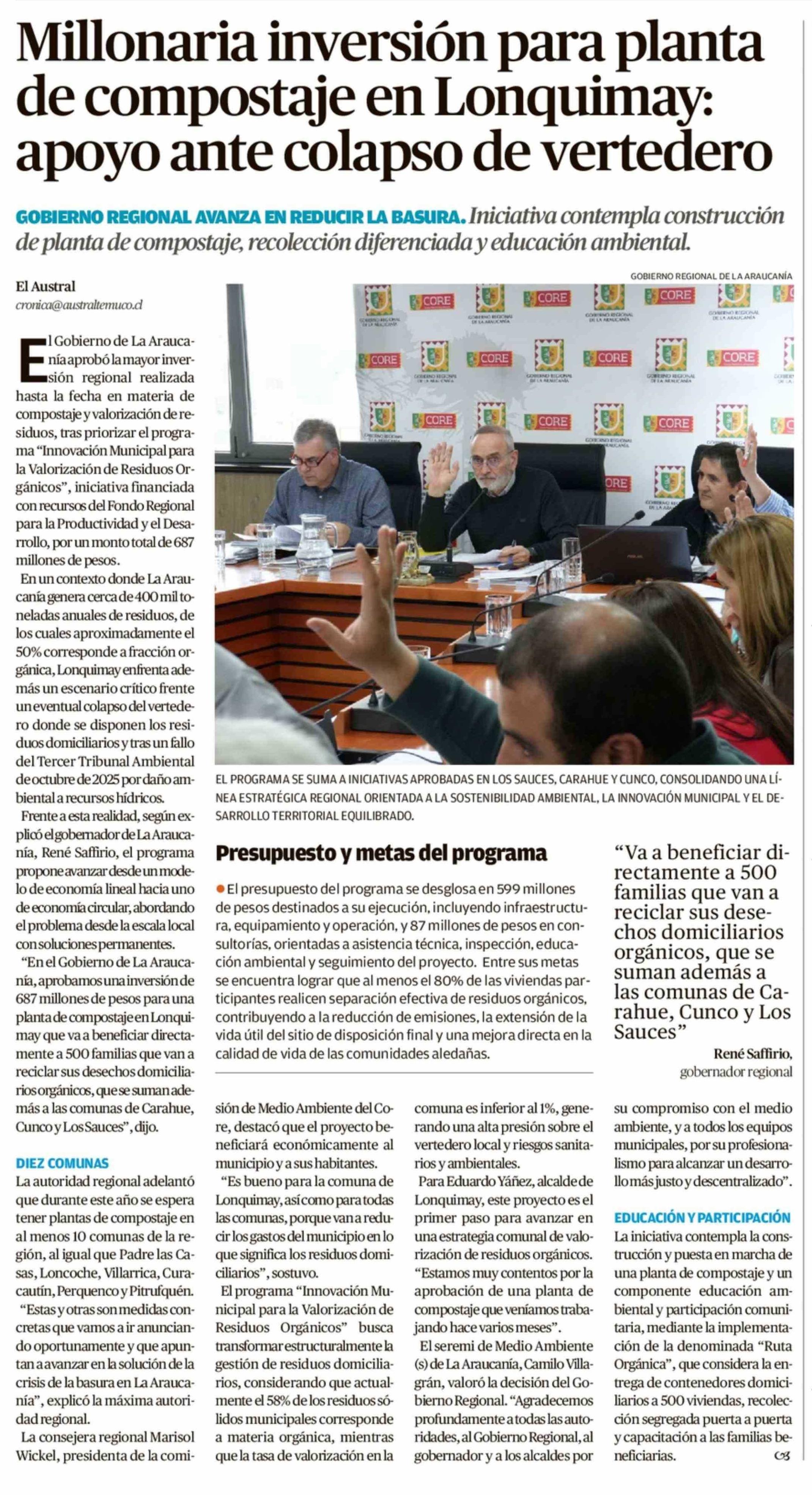 Millonaria inversión para planta de compostaje en Lonquimay: apoyo ante colapso de vertedero