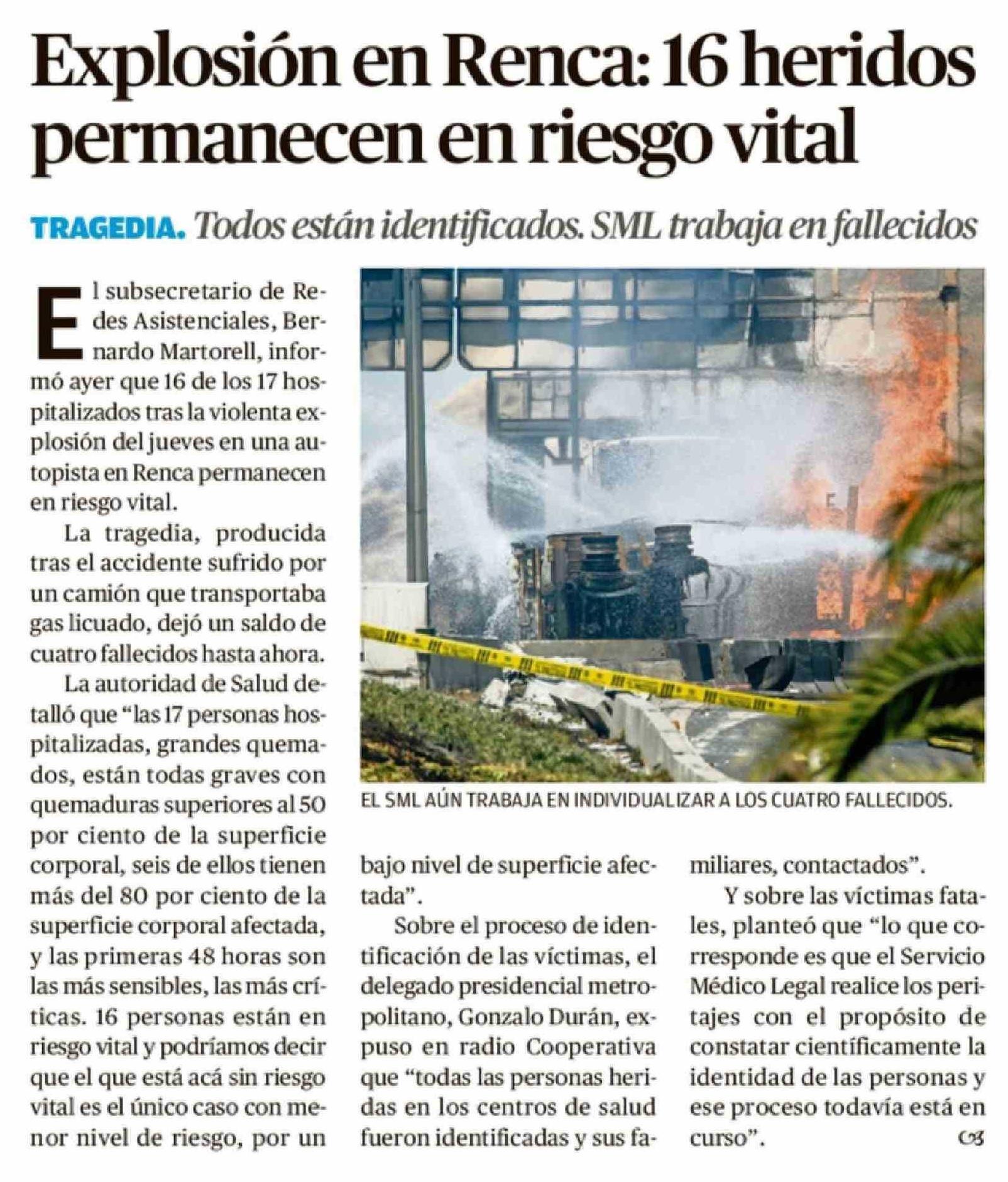 Explosión en Renca: 16 heridos permanecen en riesgo vital