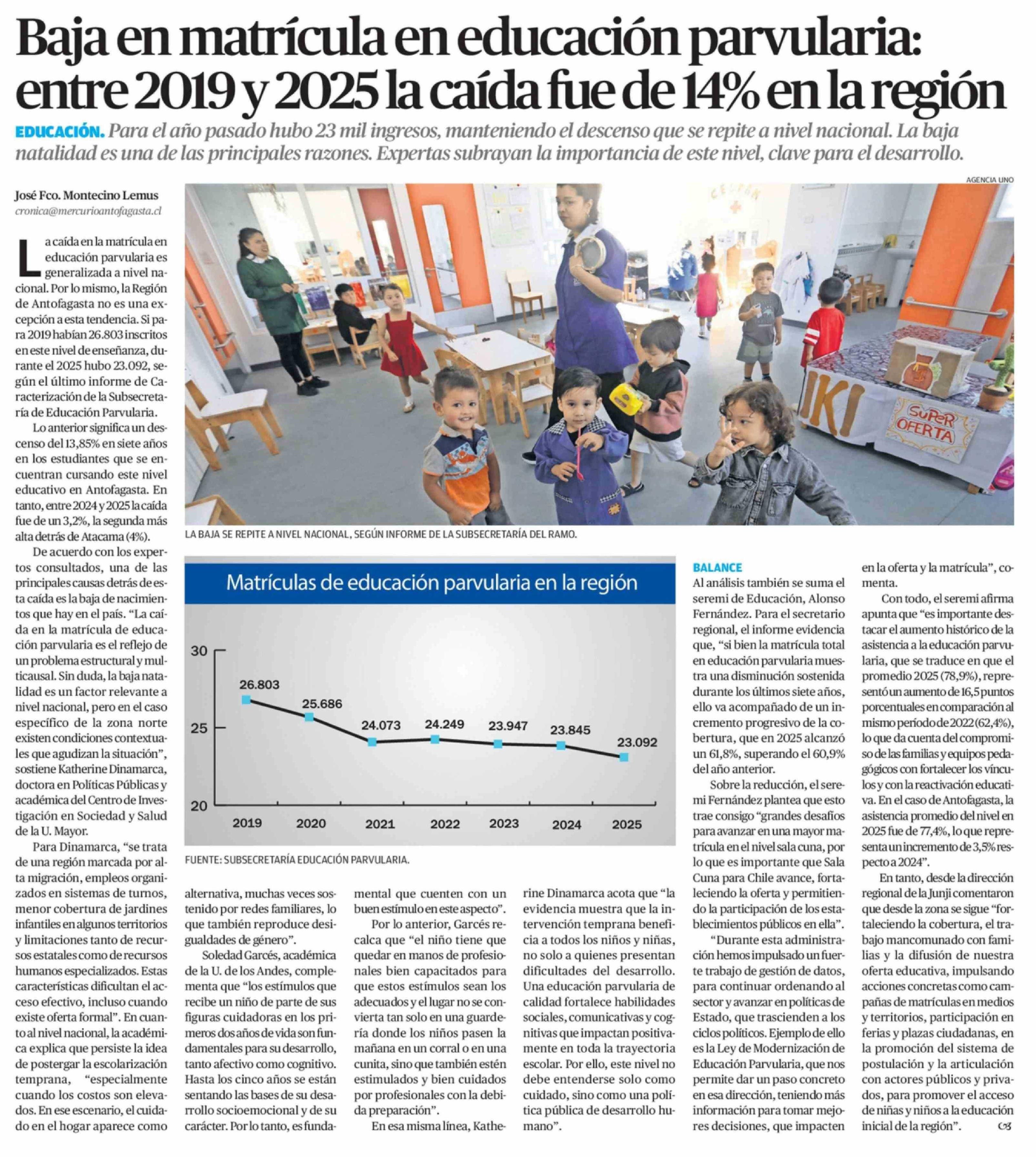 Título: Baja en matrícula en educación parvularia: entre 2019 y 2025 la caída fue de 14% en la región