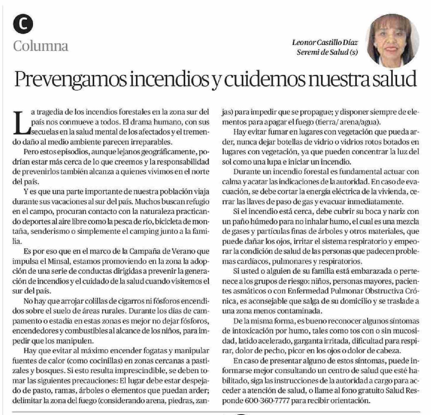 Columnas de Opinión: Prevengamos incendios y cuidemos nuestra salud