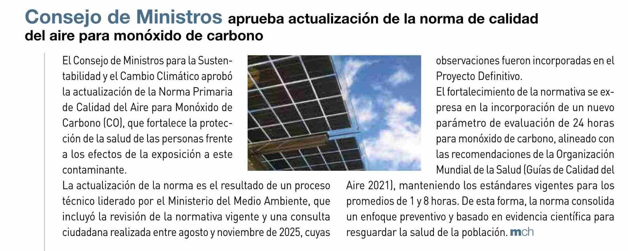 Consejo de Ministros aprueba actualización de la norma de calidad del aire para monóxido de carbono