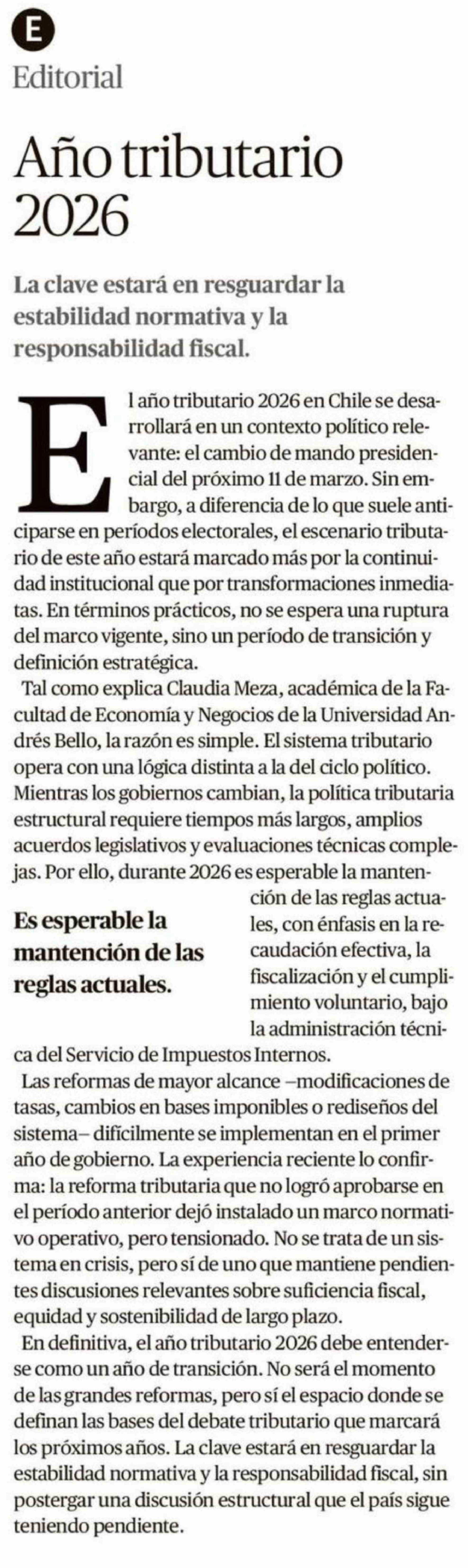 Editorial: Año tributario 2026