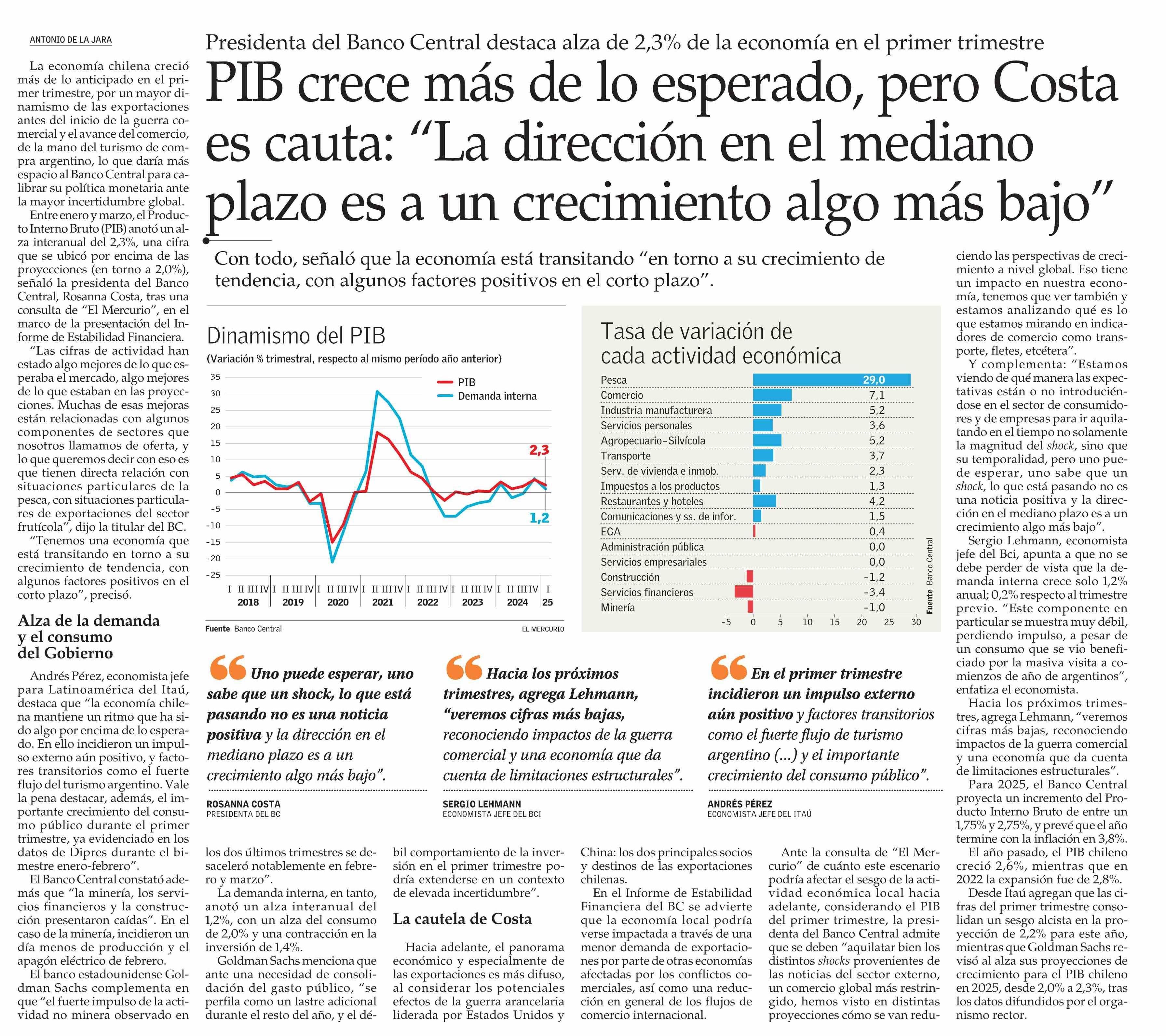 PIB crece más de lo esperado, pero Costa es cauta: "La dirección en el mediano plazo es a un crecimiento algo más bajo"