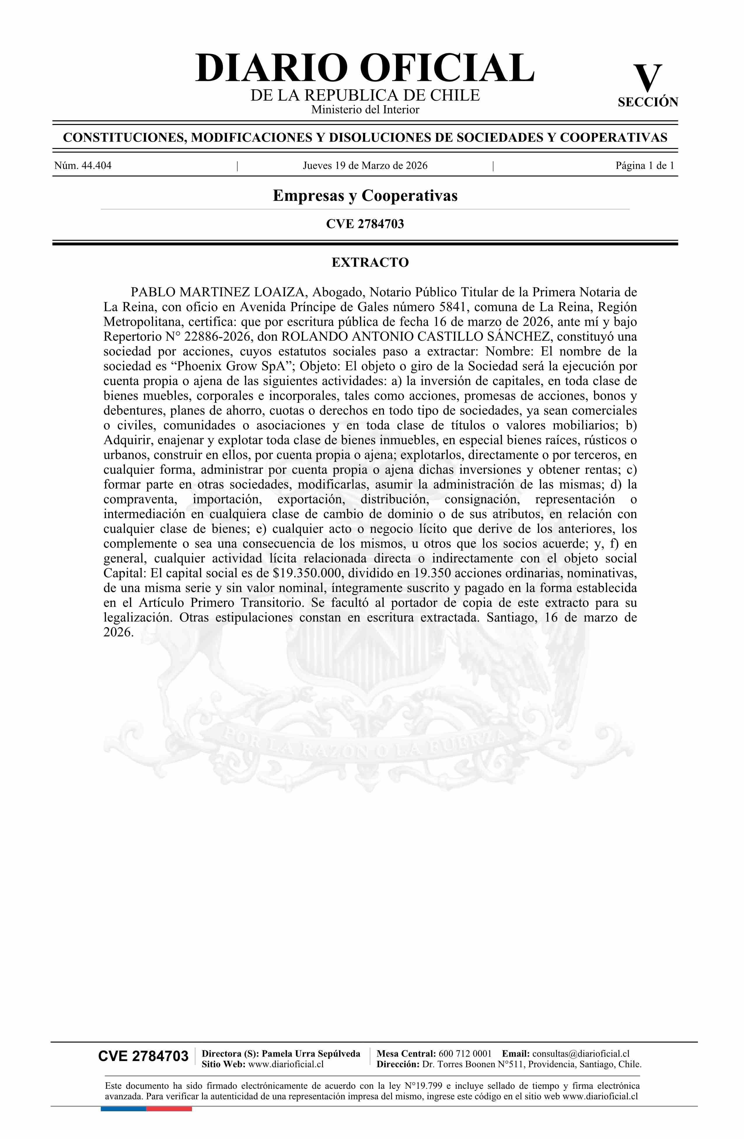 Diario Oficial Edición Electrónica (Diario Oficial de Chile - 5 Empresas Y Cooper)