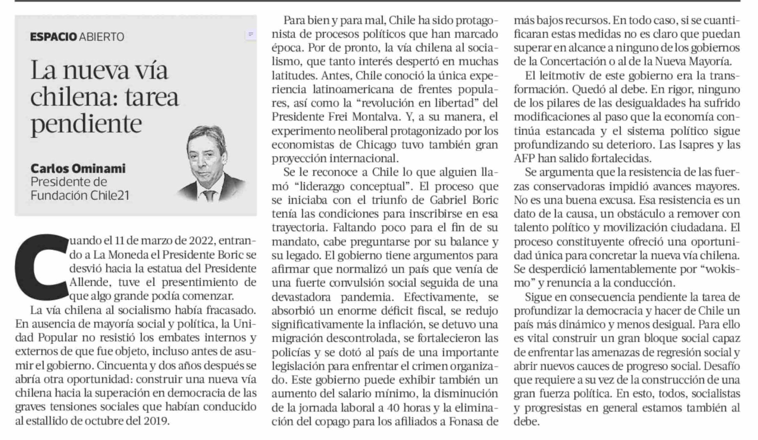 Columnas de Opinión: La nueva vía chilena: tarea pendiente