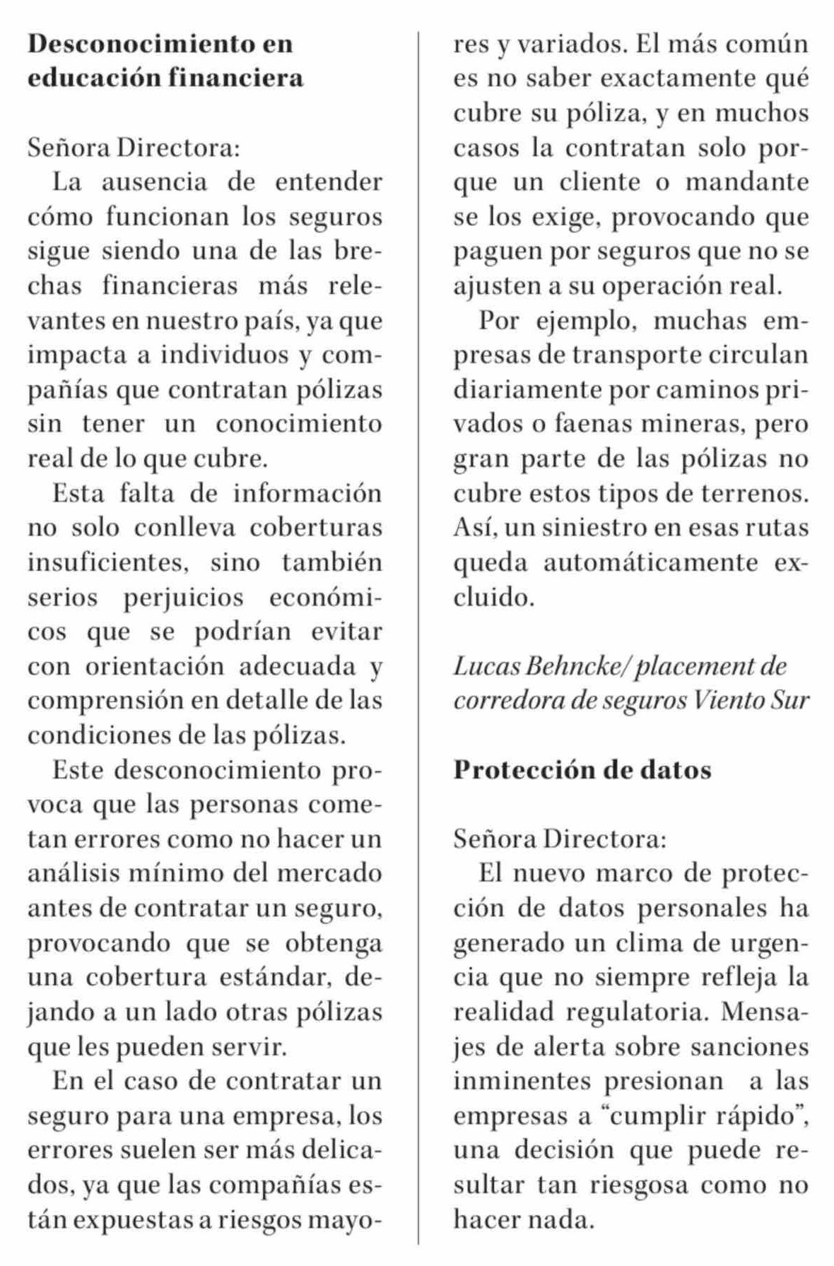 Cartas: Desconocimiento en educación financiera