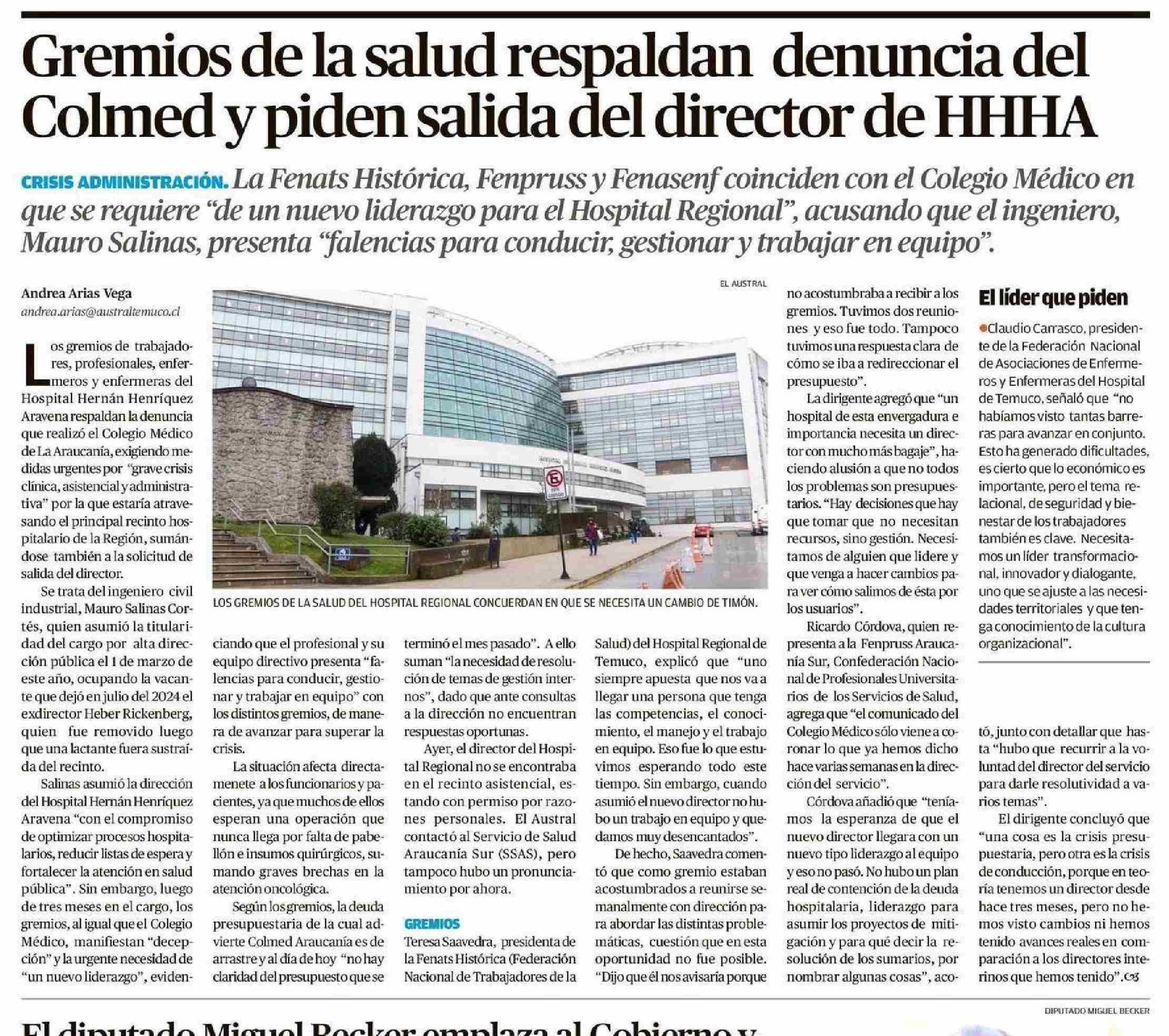 Gremios de la salud respaldan denuncia del Colmed y piden salida del director de HHHA