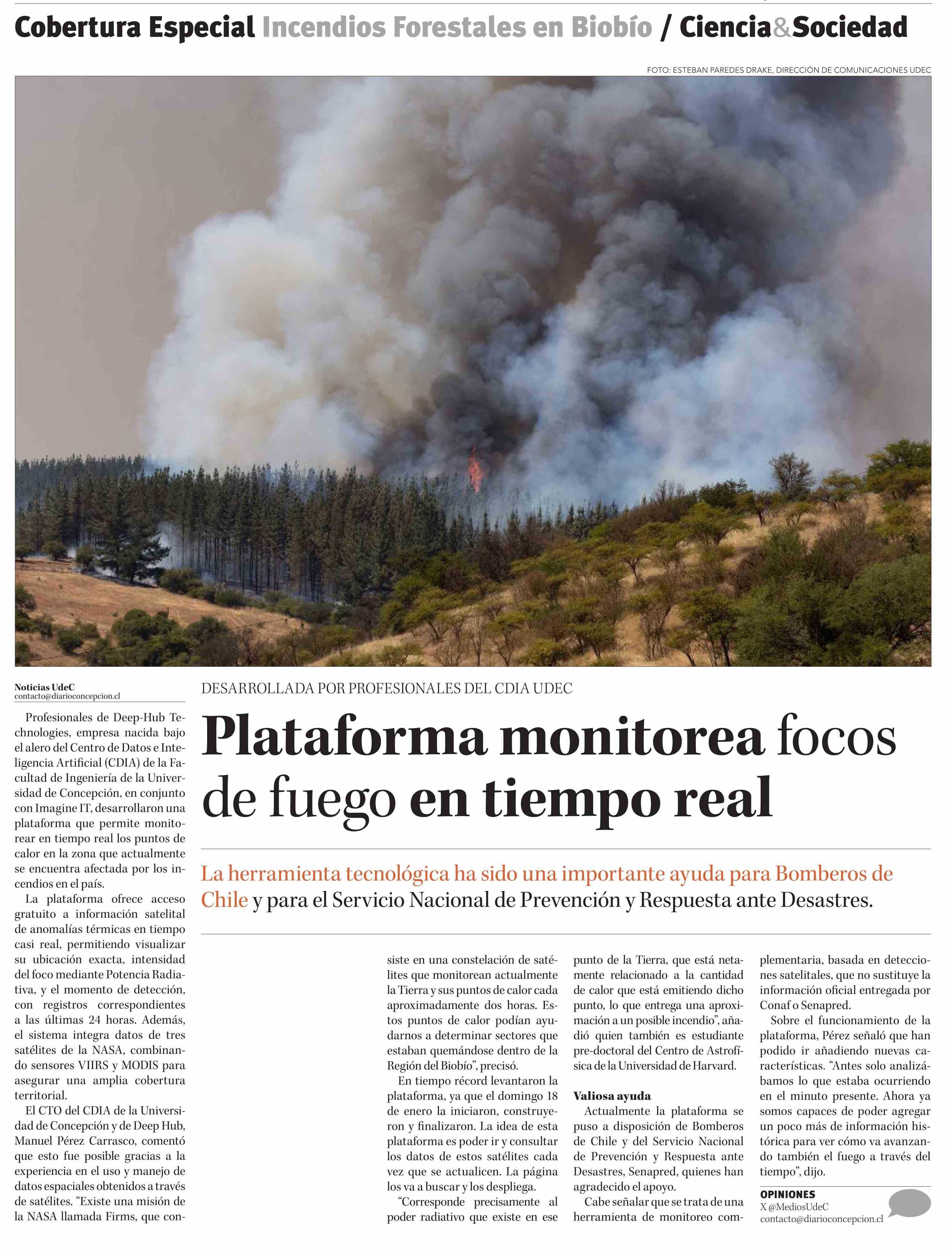 Plataforma monitorea focos de fuego en tiempo real