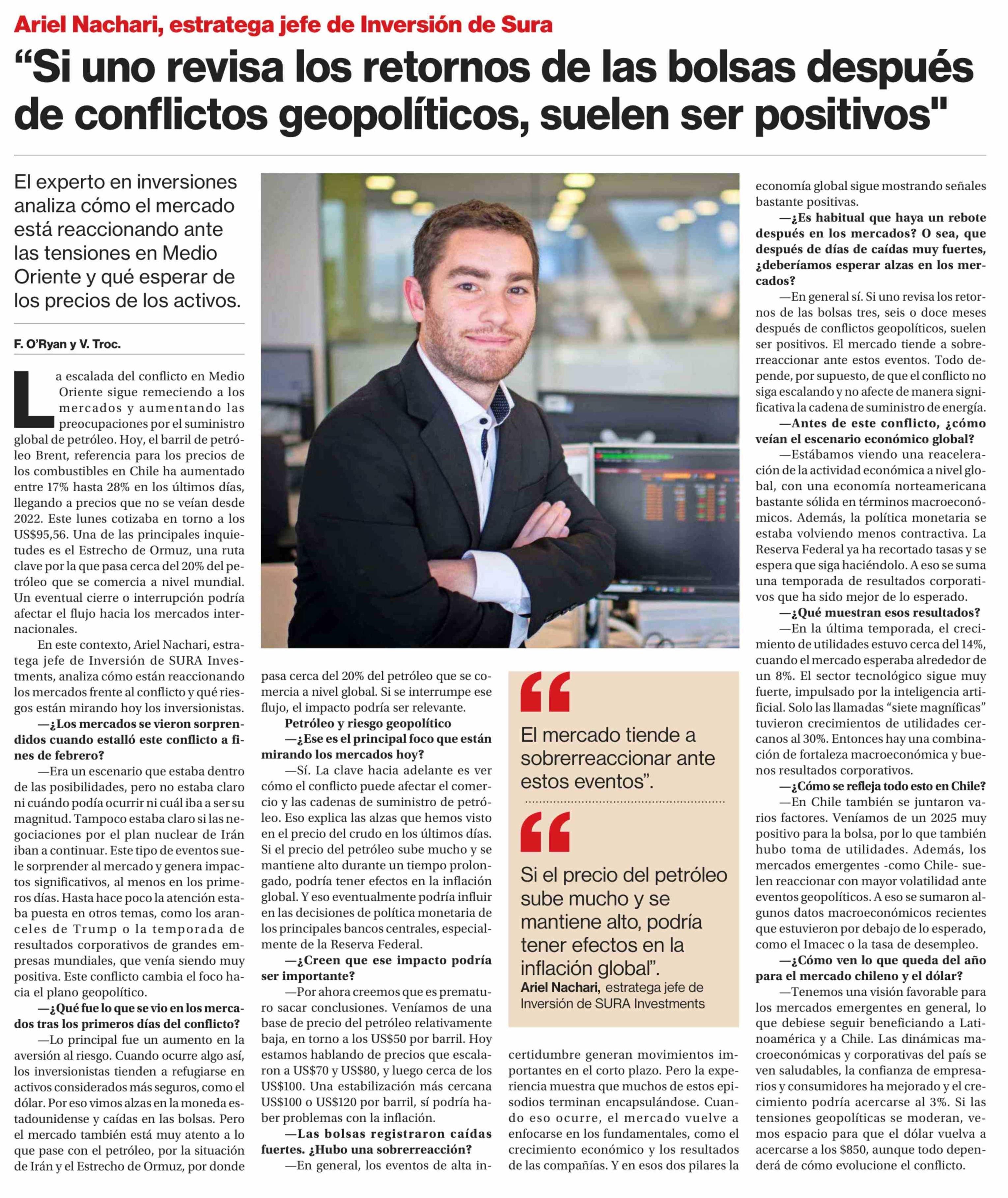 "Si uno revisa los retornos de las bolsas después de conflictos geopolíticos, suelen ser positivos"