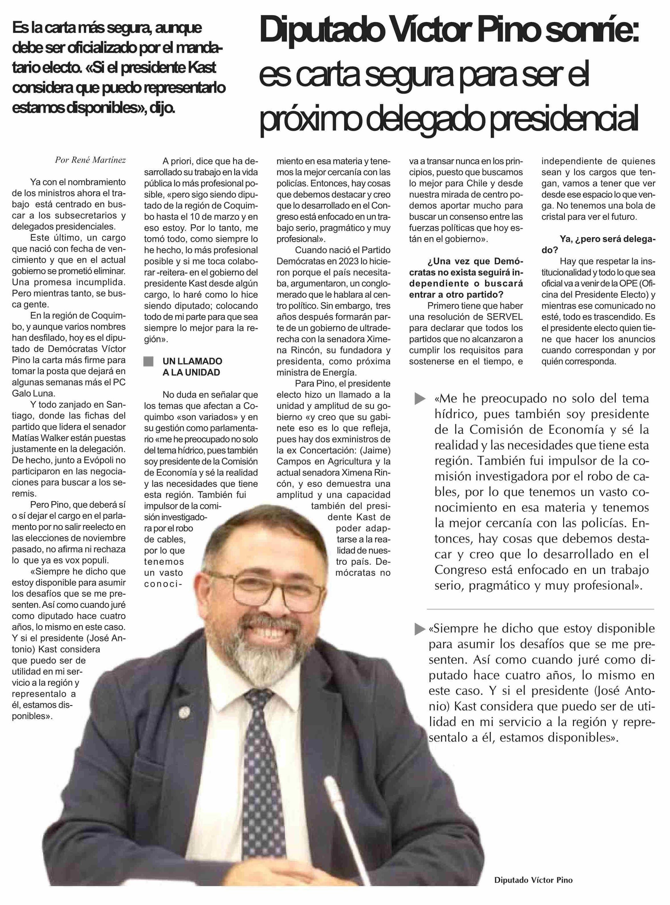 Diputado Víctor Pino sonríe: es carta segura para ser el próximo delegado presidencial