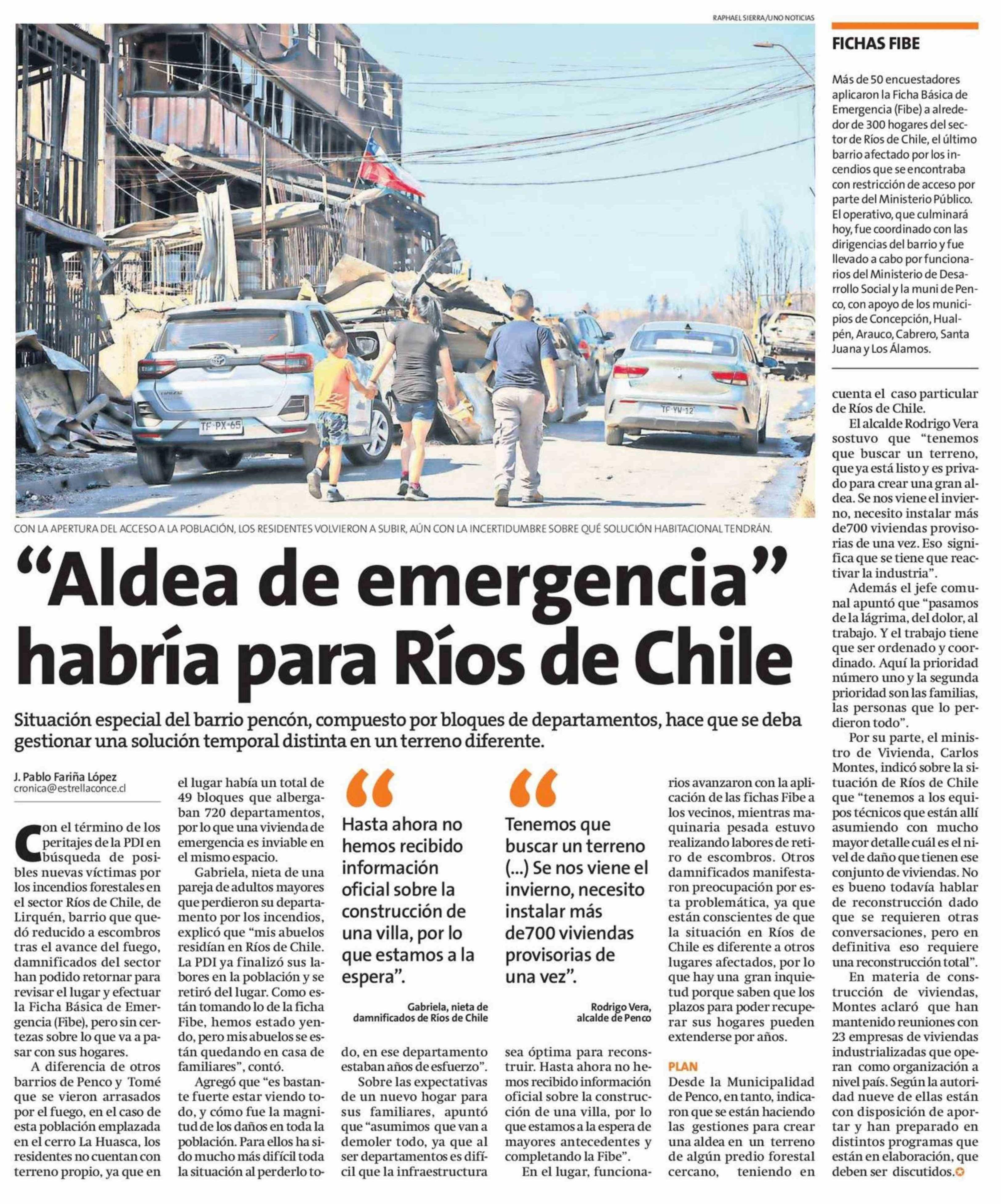 "Aldea de emergencia" habría para Ríos de Chile