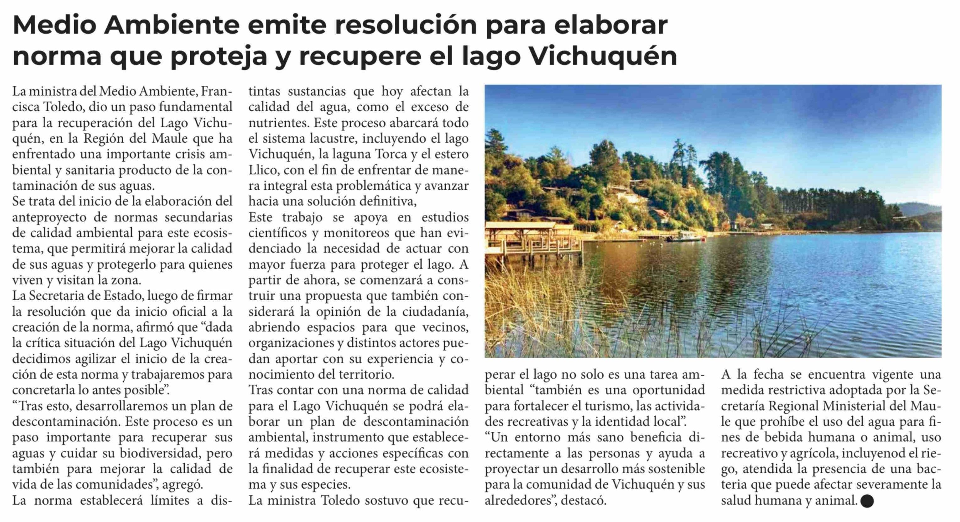 Medio Ambiente emite resolución para elaborar norma que proteja y recupere el lago Vichuquén