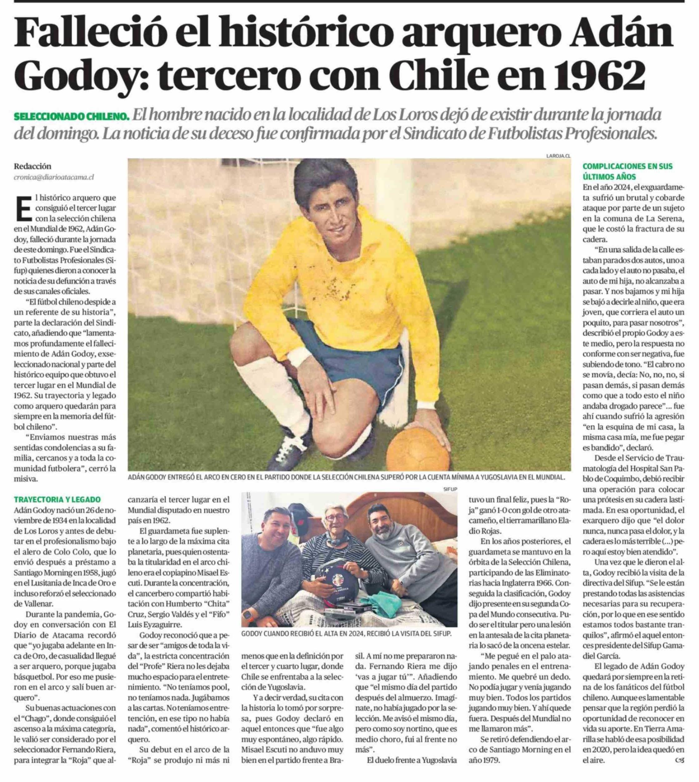 Falleció el histórico arquero Adán Godoy: tercero con Chile en 1962