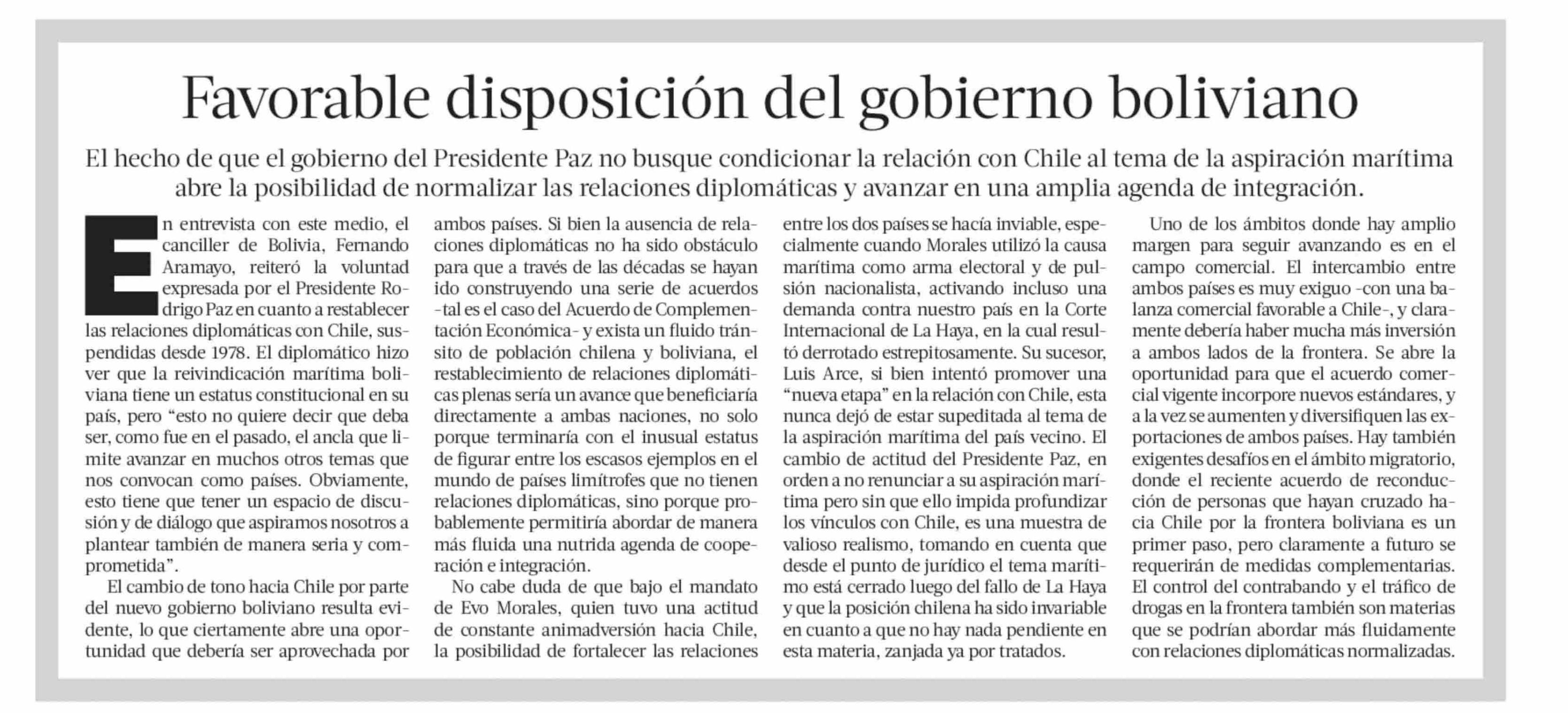 EDITORIAL: Favorable disposición del gobierno boliviano