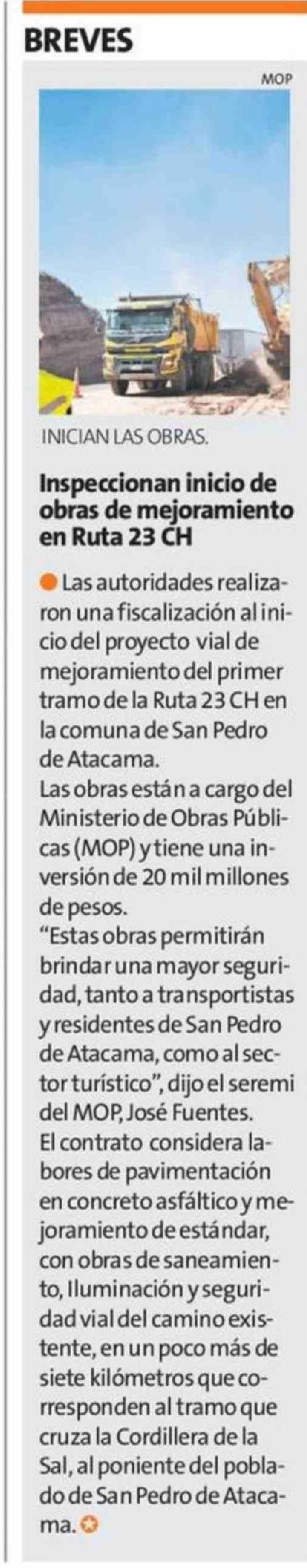 Inspeccionan inicio de obras de mejoramiento en Ruta 23 CH